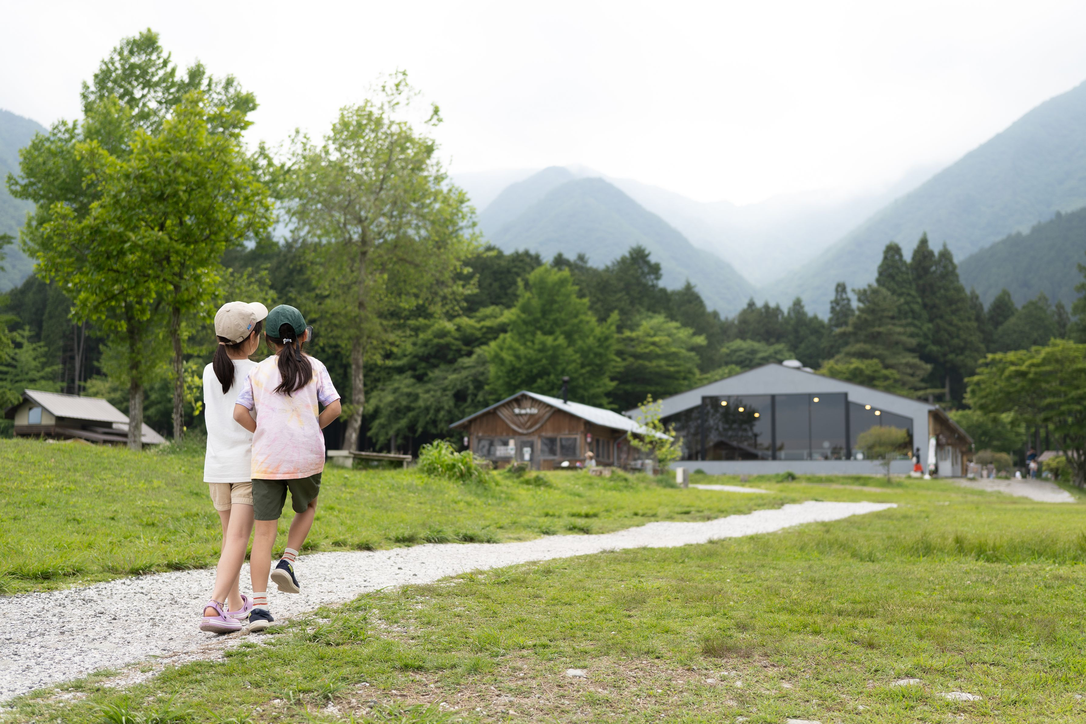 キャンプでの一コマ 仲良しのお友達と楽しく散歩