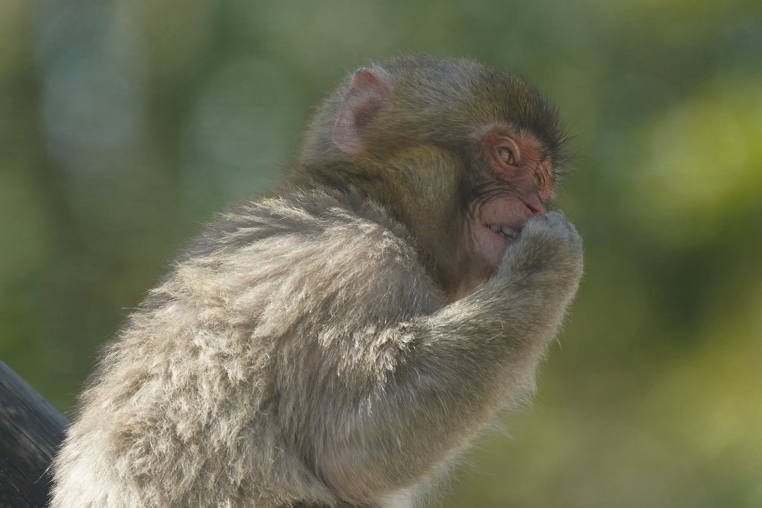 手を口に当て何となく笑っているようなおサルさん。