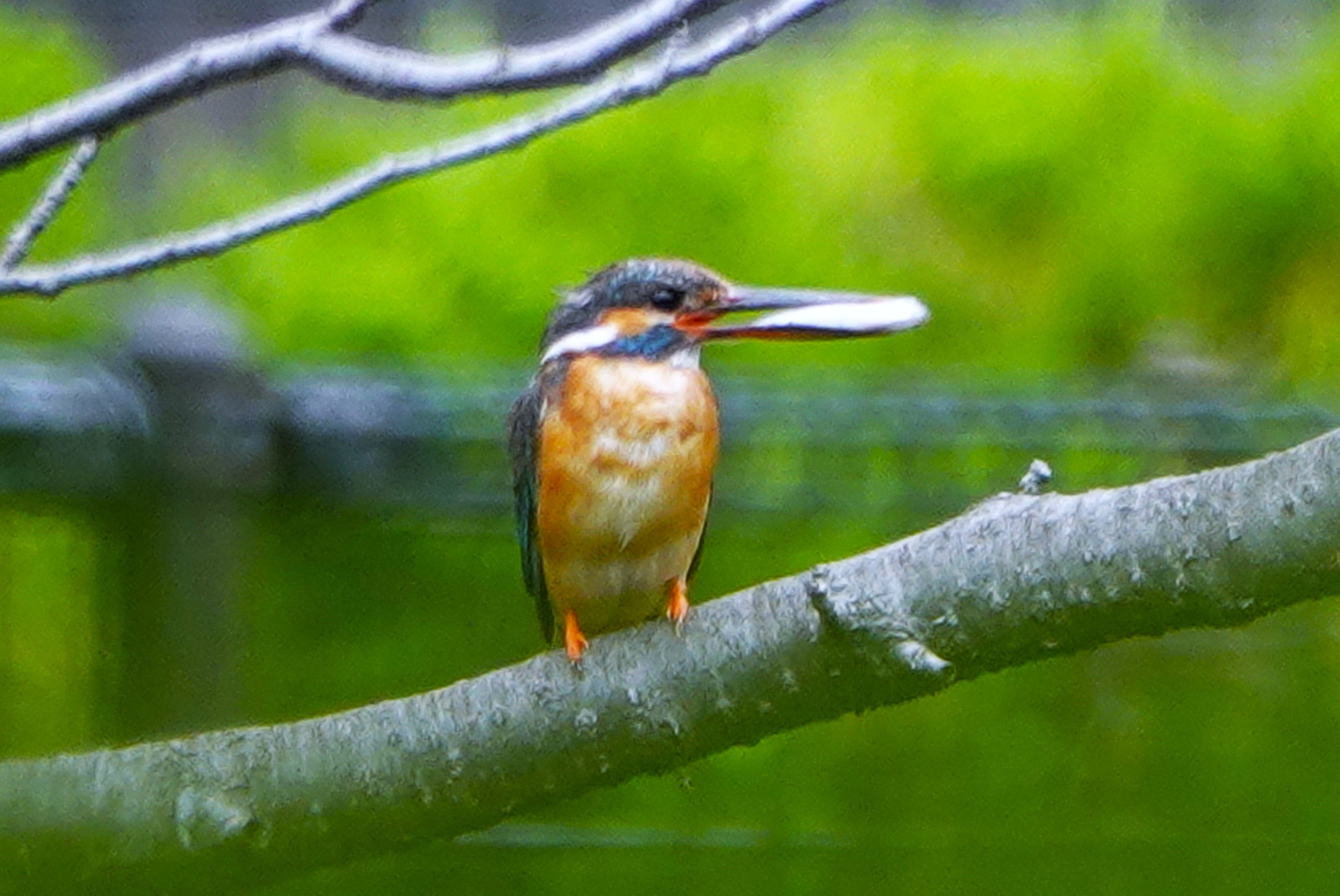 久し振りにカワセミと出会い、餌をとったカワセミがサクラの木の枝にとまったところを撮って見ました。その後カワセミは餌を咥えたままどこか雛がいるのか遠方に飛んで行きました。
