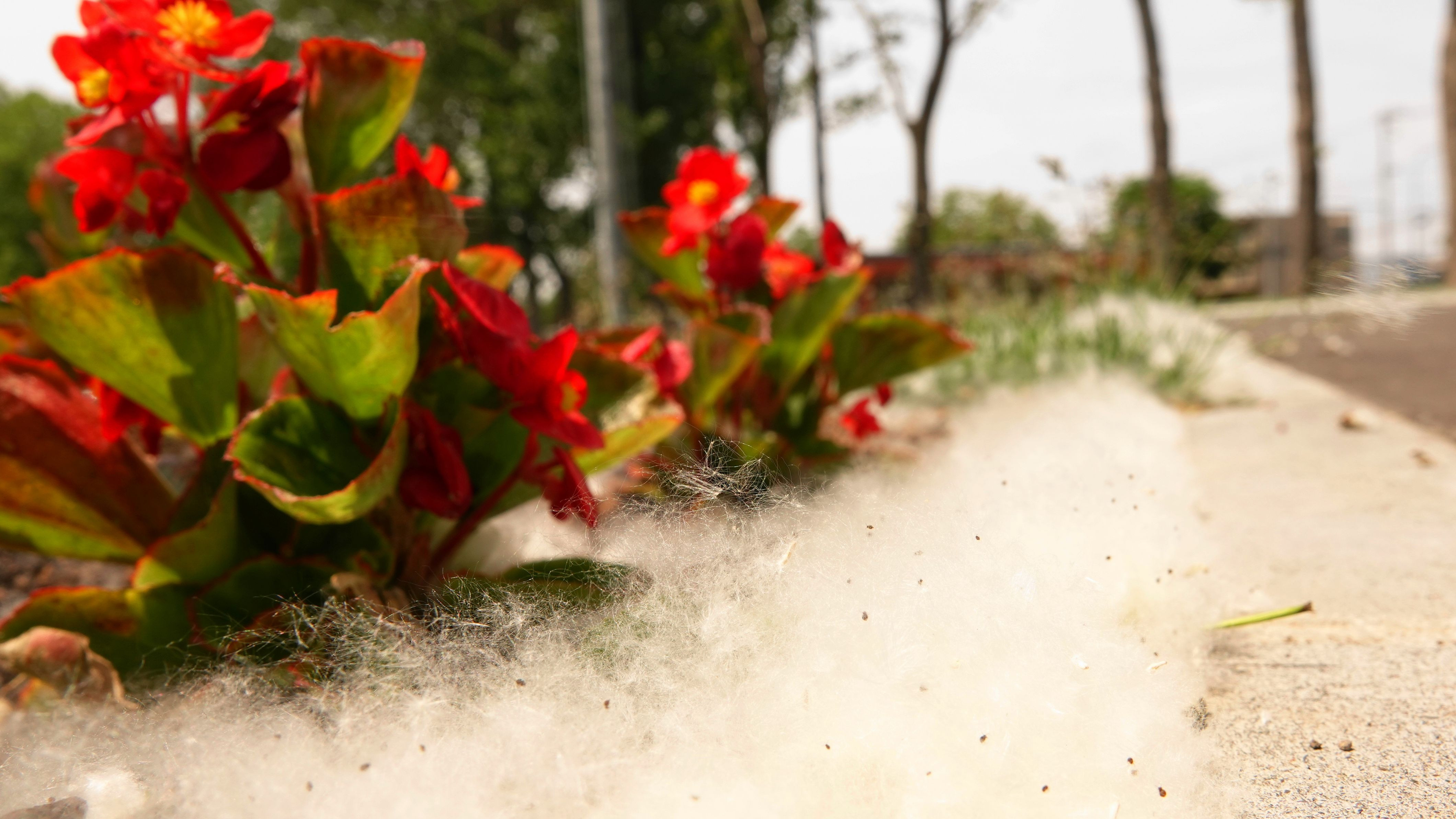 夕景モードで撮影すると アイボリー塗装がピンクに化けた⁉ 可愛いぃヨンマル(*'▽') ※おまけ・・初夏の雪?ポプラの種子が積もる