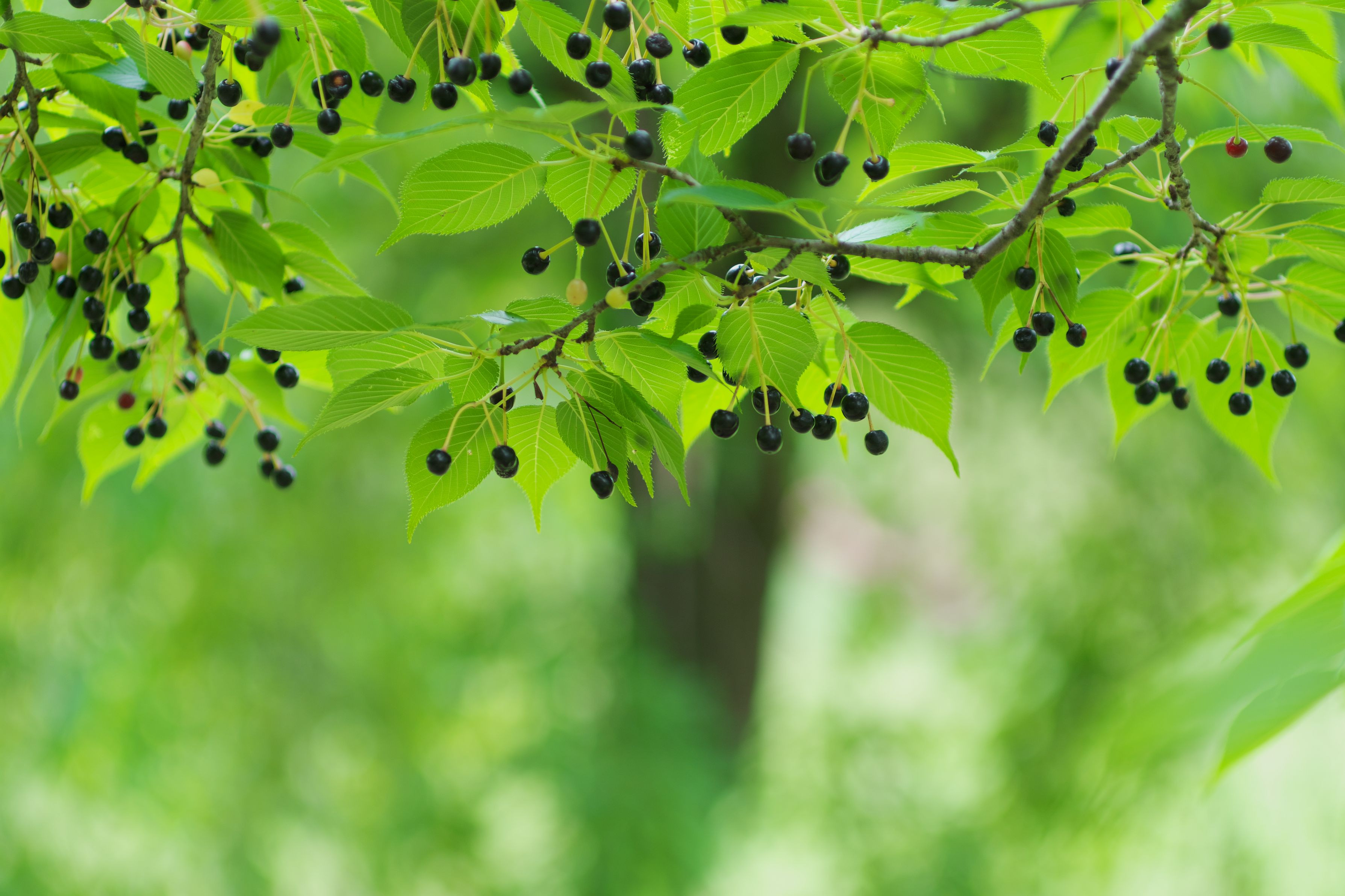 新緑と黒い実。