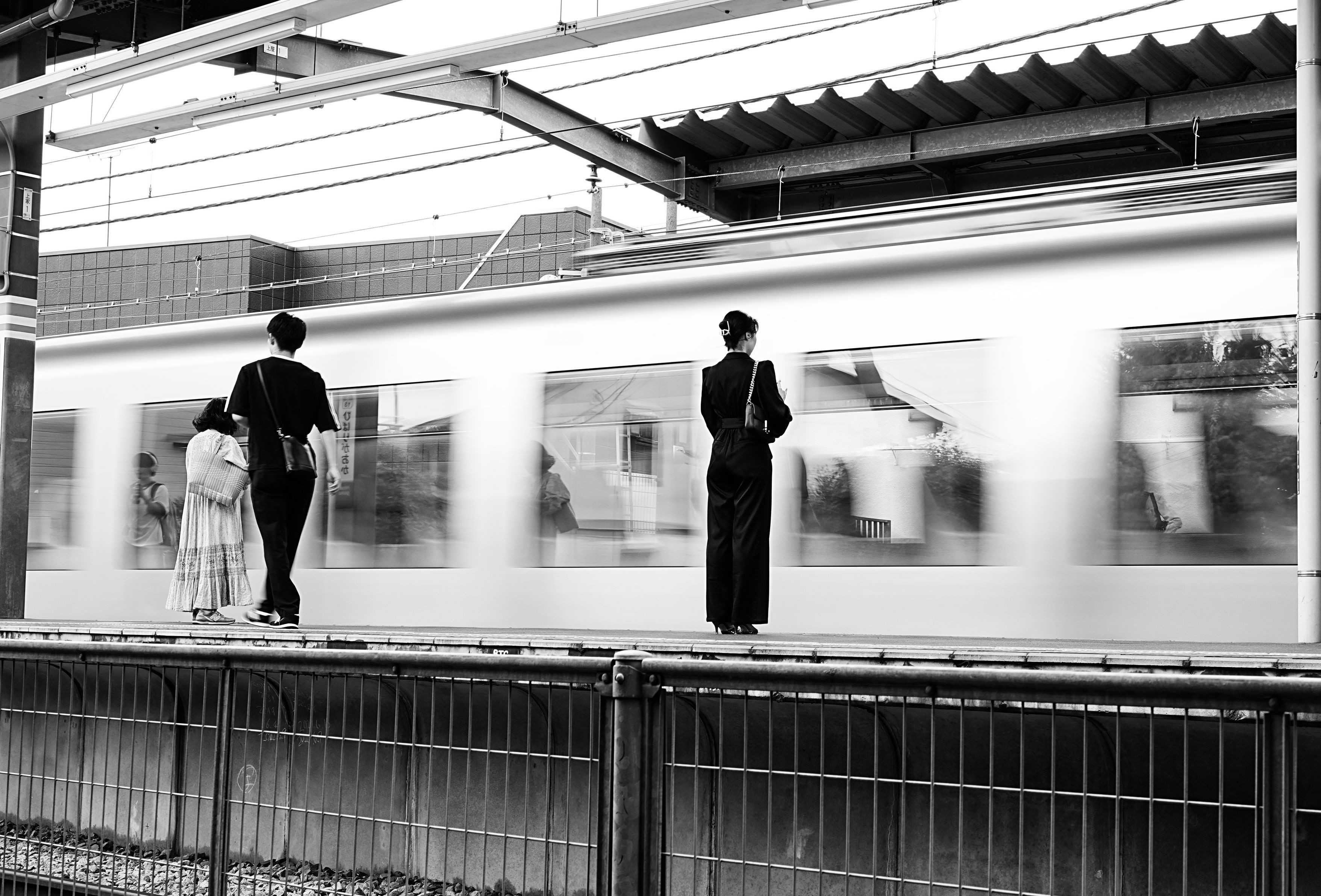 street snap black and white still vs. motion clear vs. blurred reflection