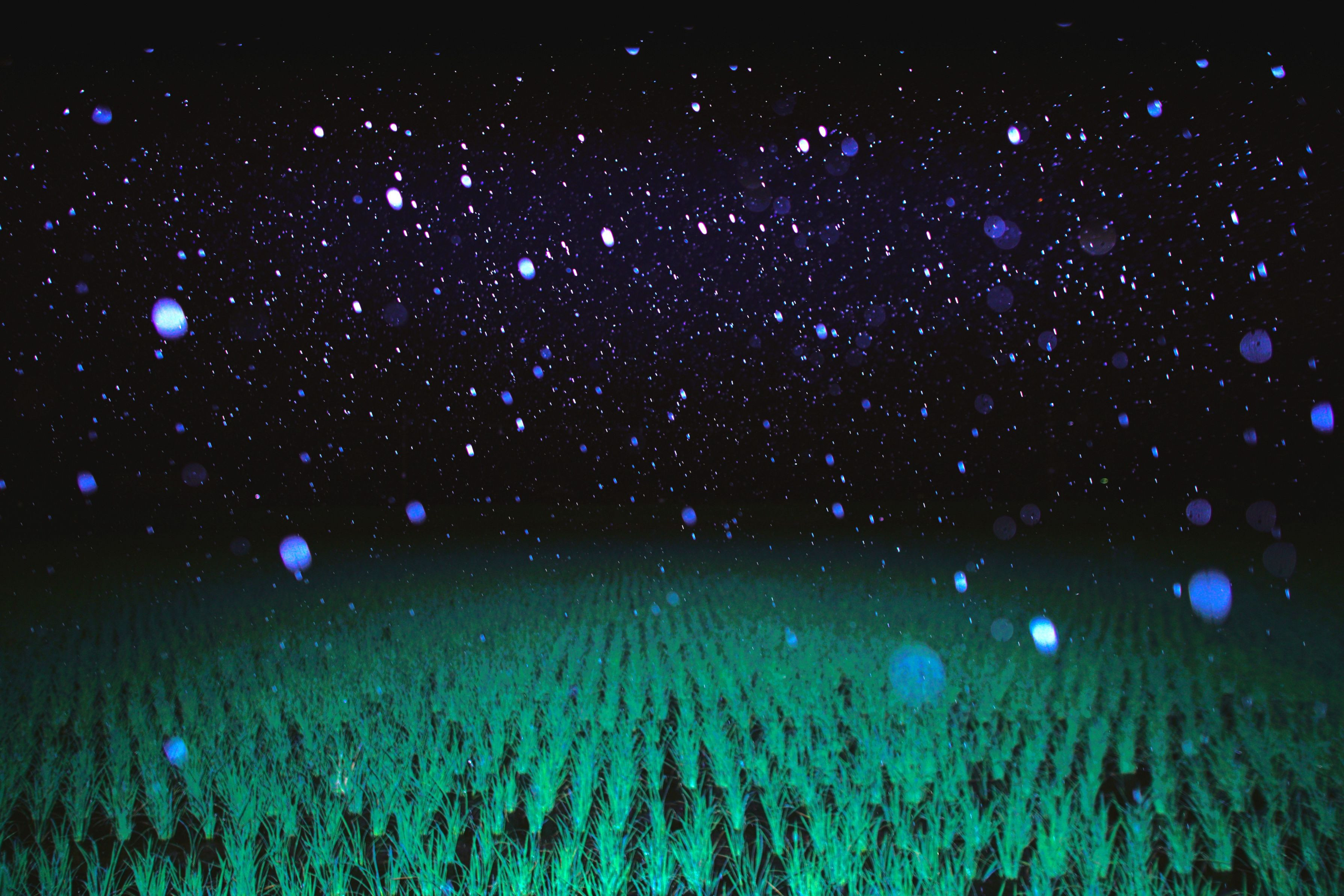 夜の田んぼに、恵みの雨が降りました。