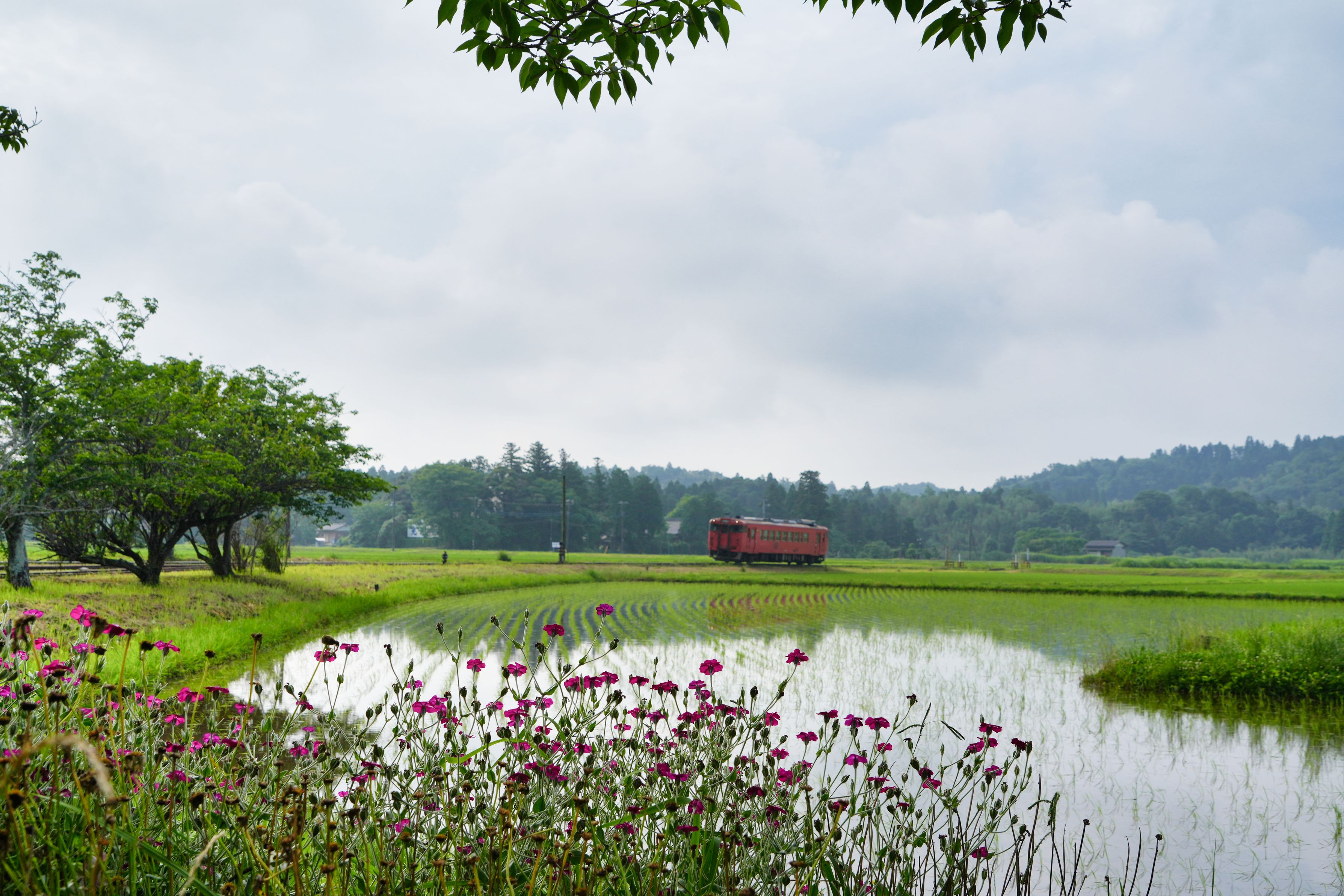 6月12日 小湊鉄道:上総鶴舞駅 13日に投稿したホーム停車の男鹿線カラーのキハ40を撮った後 一旦上総鶴舞駅を離れ月崎駅、上総大久保駅付近へ行って来ました。 その帰りにまた立ち寄って撮ったシーンからのアップです。 この手前の花を入れたく舞い戻りました。*スイセンノウ(フランネルソウ)では と思われます。グーグルレンズより
