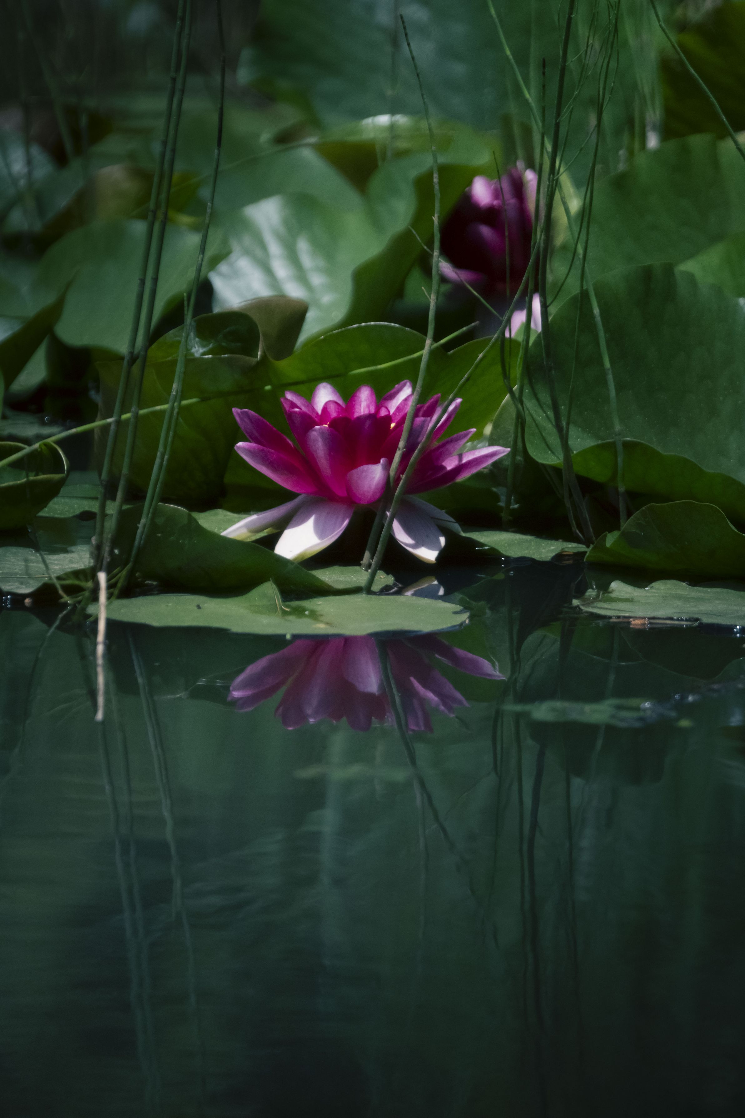 道中で見つけた睡蓮に見惚れました