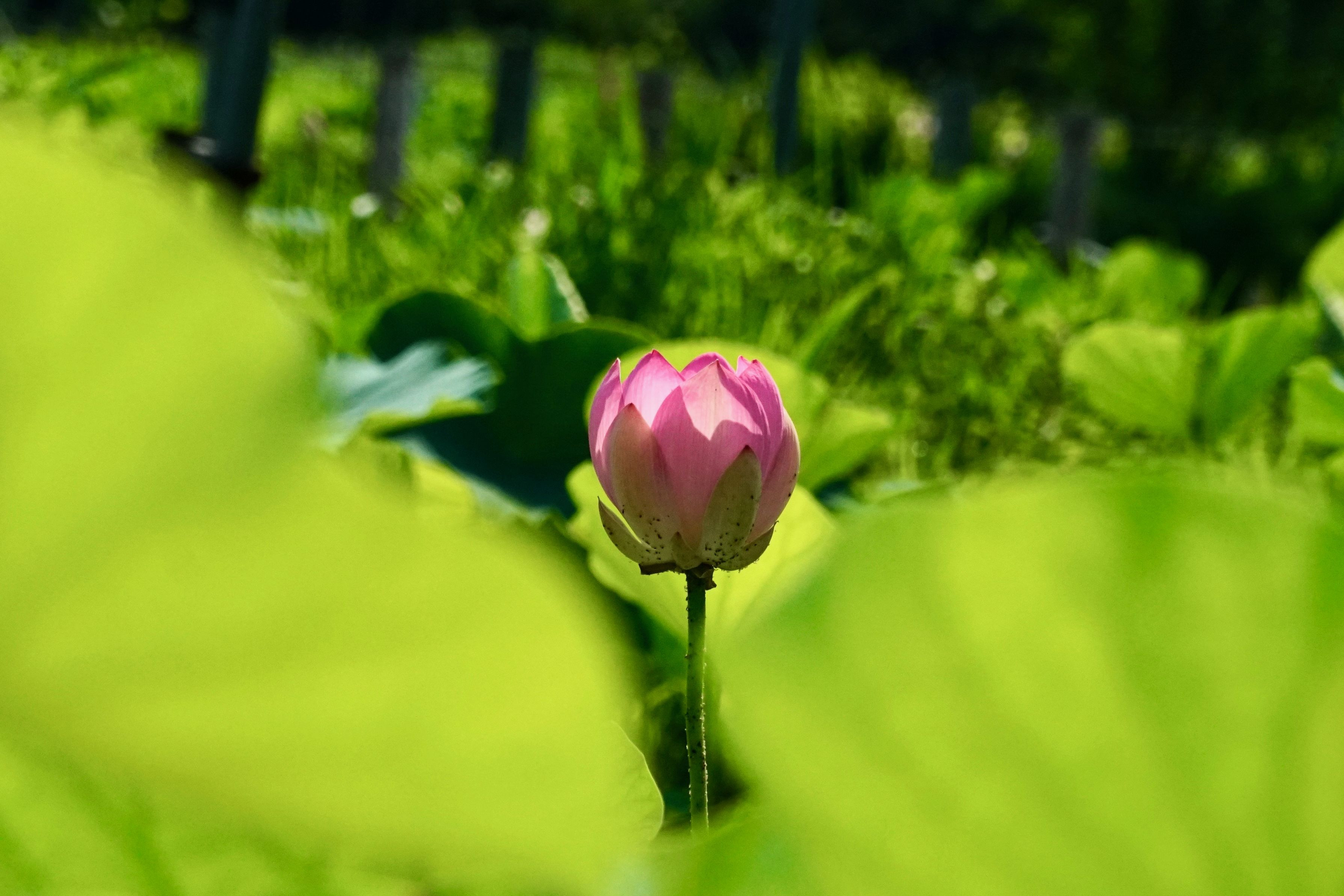 近くの神社の池にさく古代ハス。元々は一粒の種子から今は各地に株分けされています。