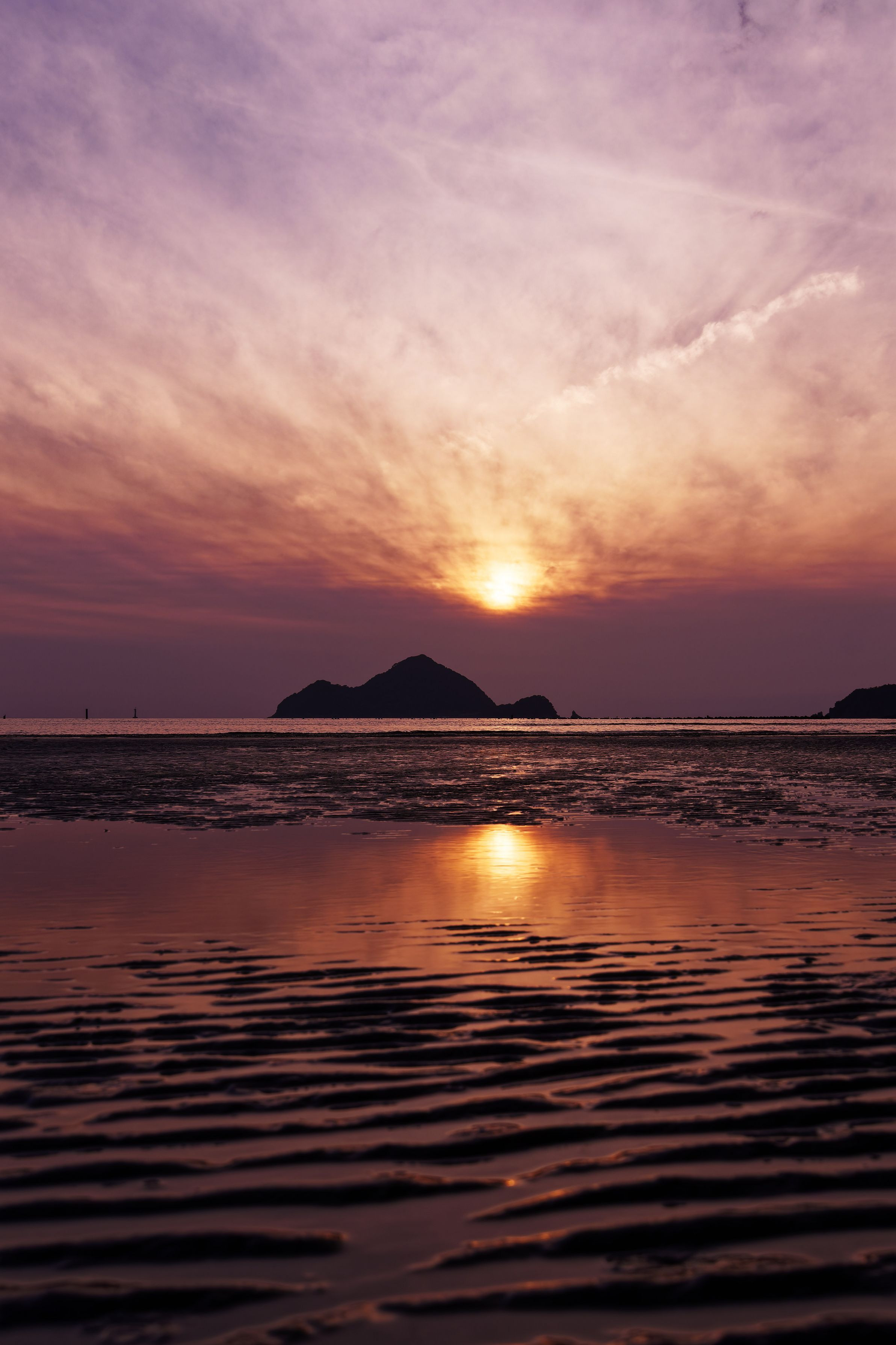 夕日に染まる水面(みなも)