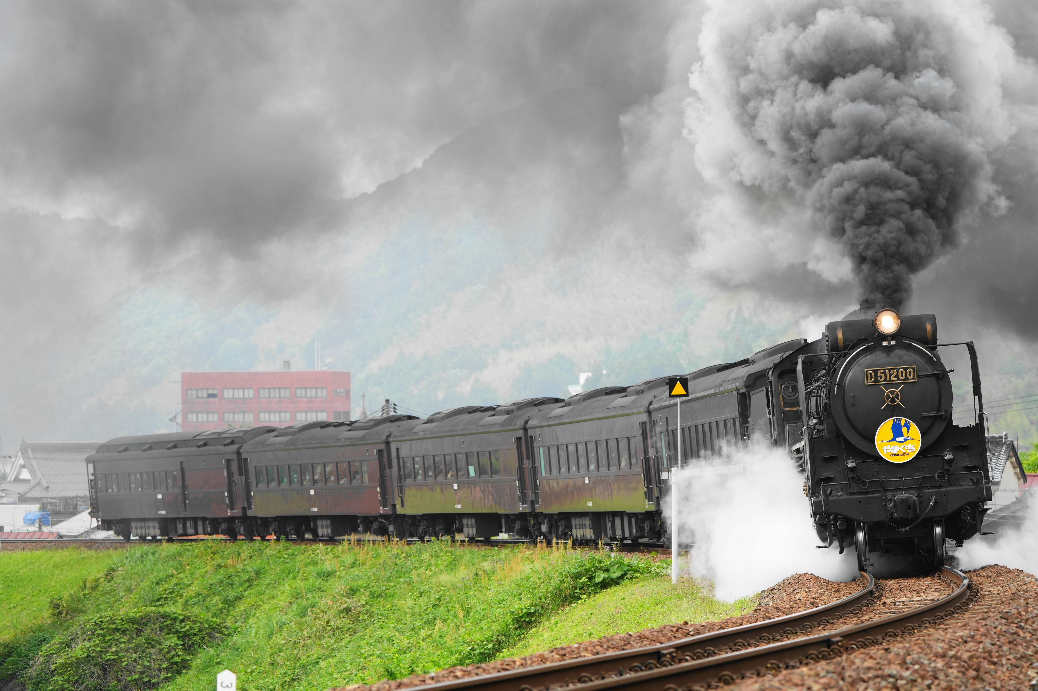 津和野発の山口線 今日も元気に煙もドレーンも吐きはき快走していました。