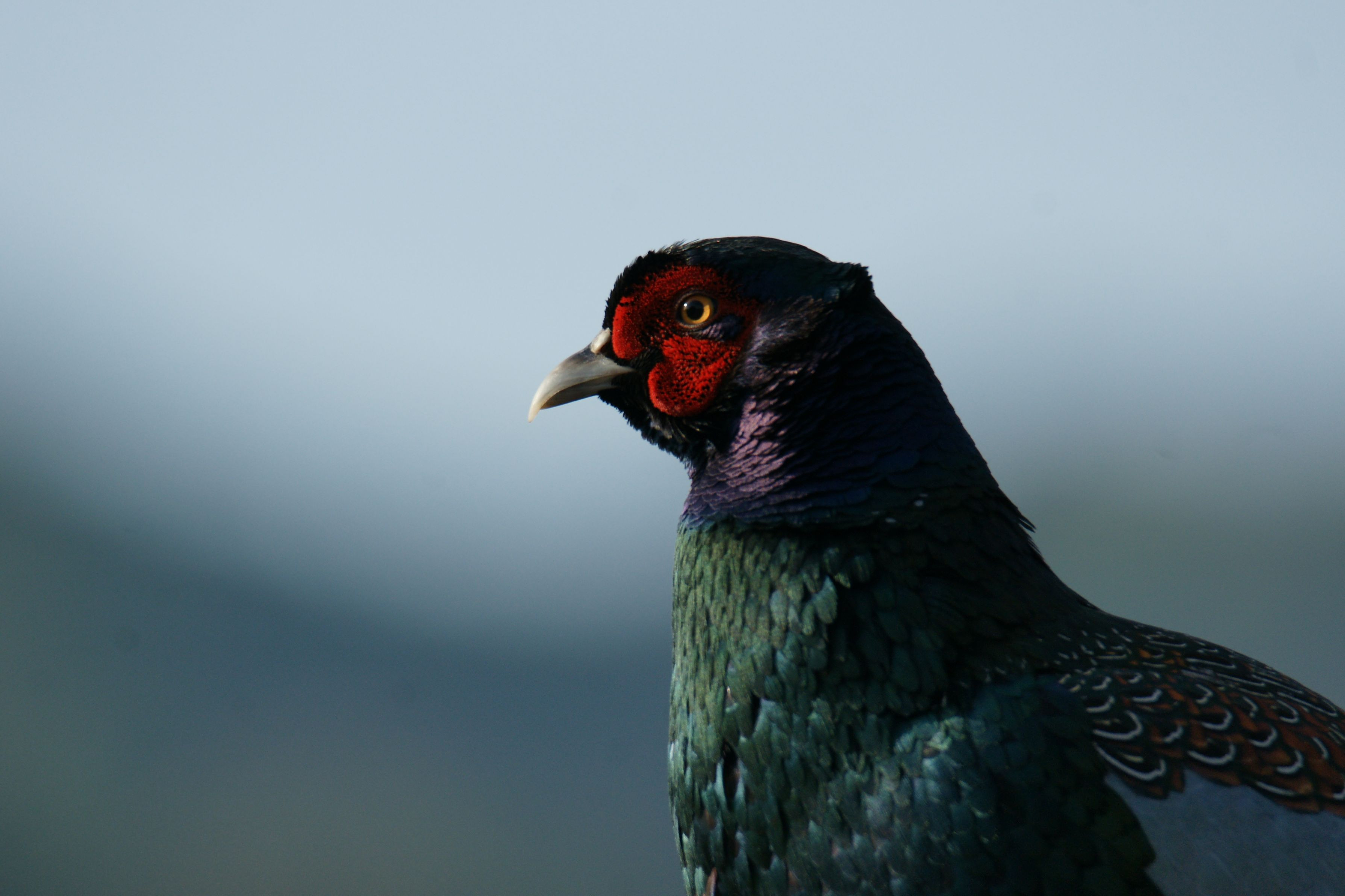 頭の赤から紫、緑の肩までの羽根の色の変化がおしゃれ! 野鳥 野鳥撮影 野鳥写真 キジ 雉 国鳥