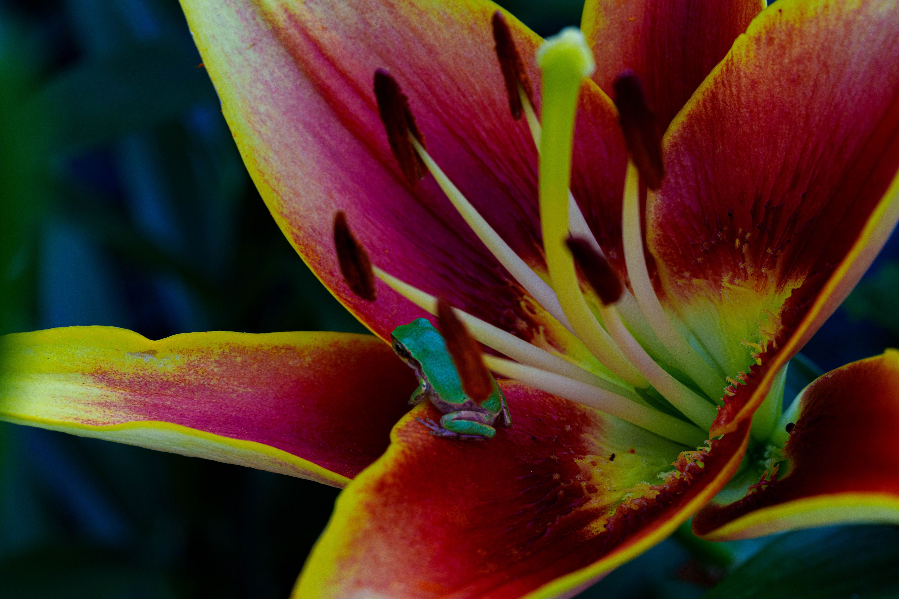 我が家のユリを見ていたら、小さな来客が・・・・。