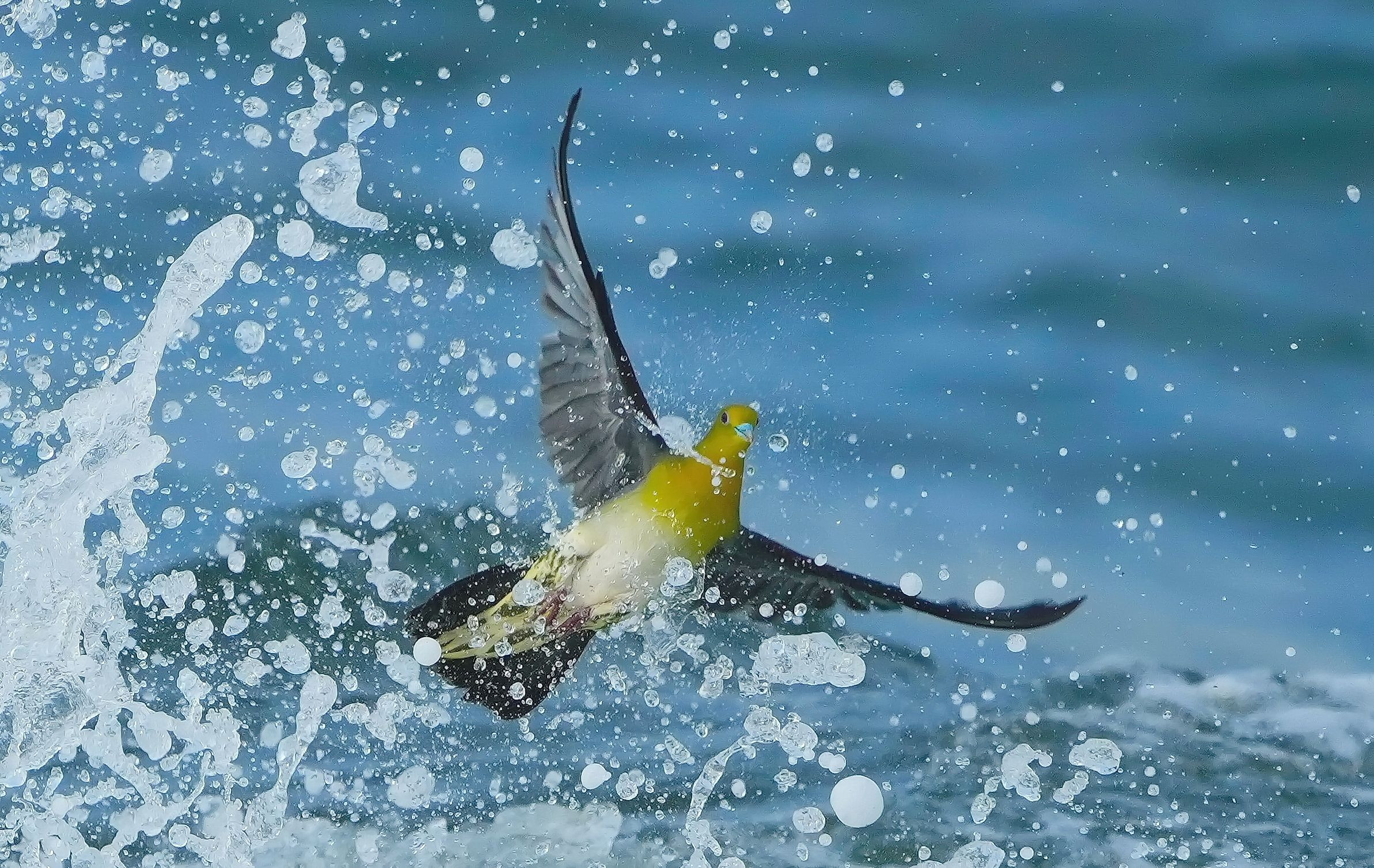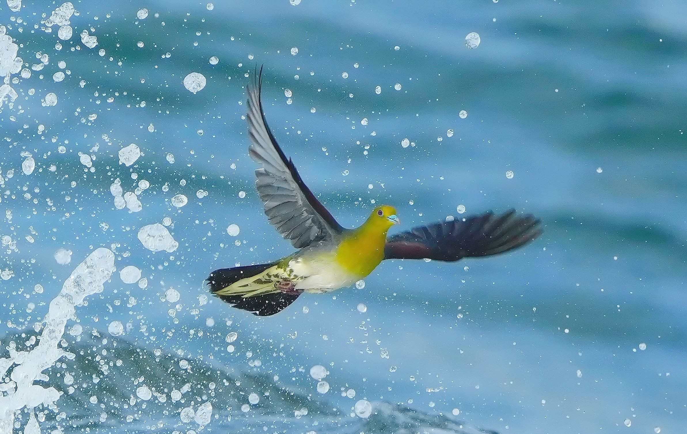 波に臆せずやって来るアオバト、波が来るギリギリまで飲んでます。