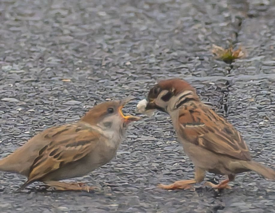 巣から出て、お外で実習中のスズメさん。 まだまだご飯食べさせてもらってますが、数日後には独り立ちするんでしょうね☺️