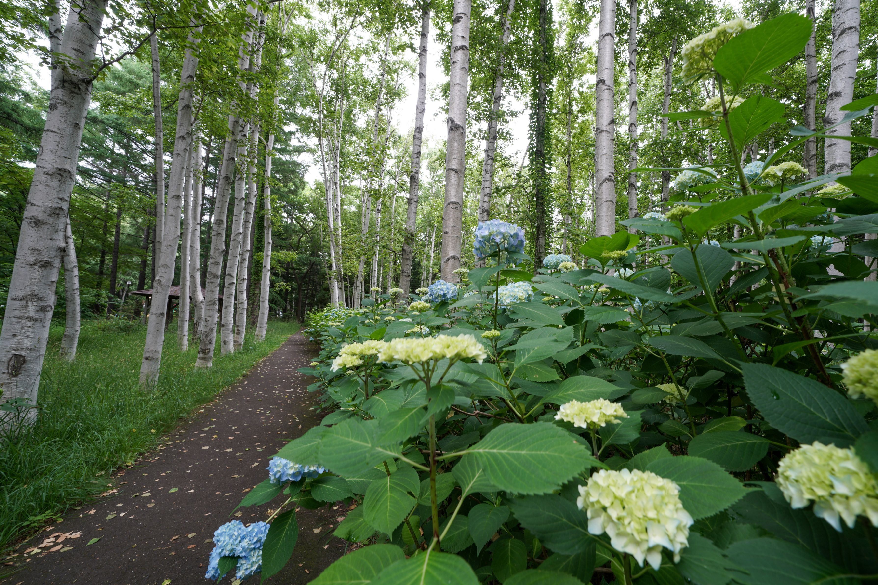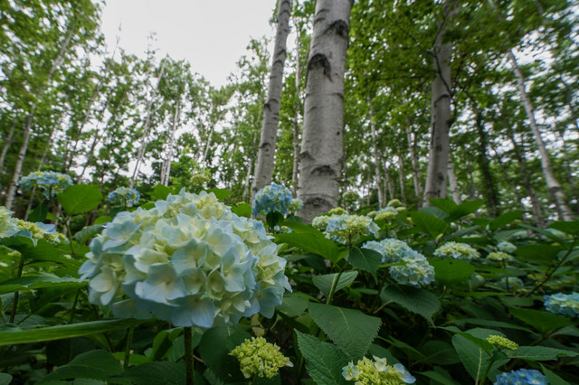 豊平公園内のアジサイの花が雨にも負けず
