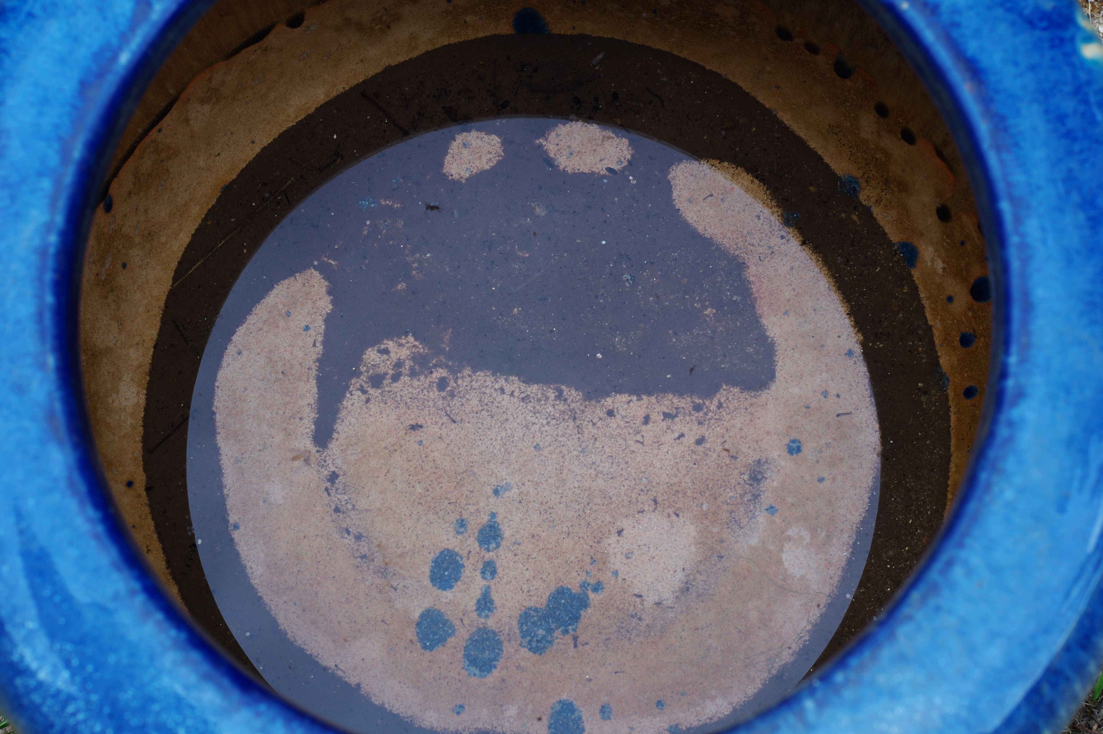 火鉢の中の水と泥の模様。