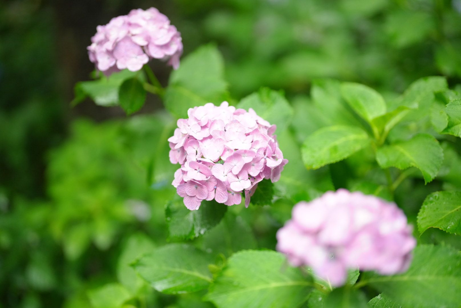 可愛らしい小さな紫陽花が斜めに連なっていました。
