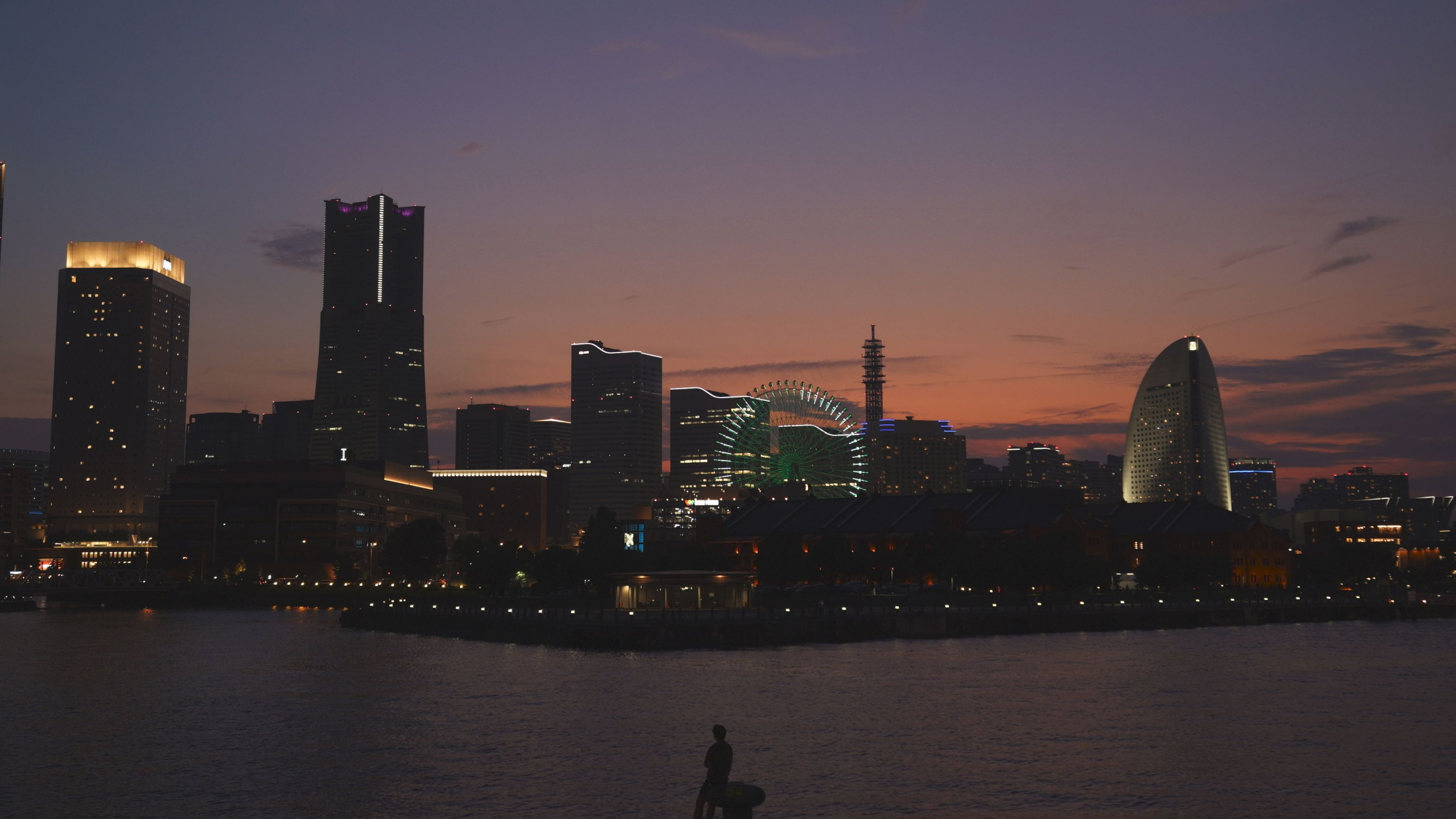 日が沈み、街が光を灯す瞬間を待つ旅人を撮影 #みなとみらい#夜景#大さん橋