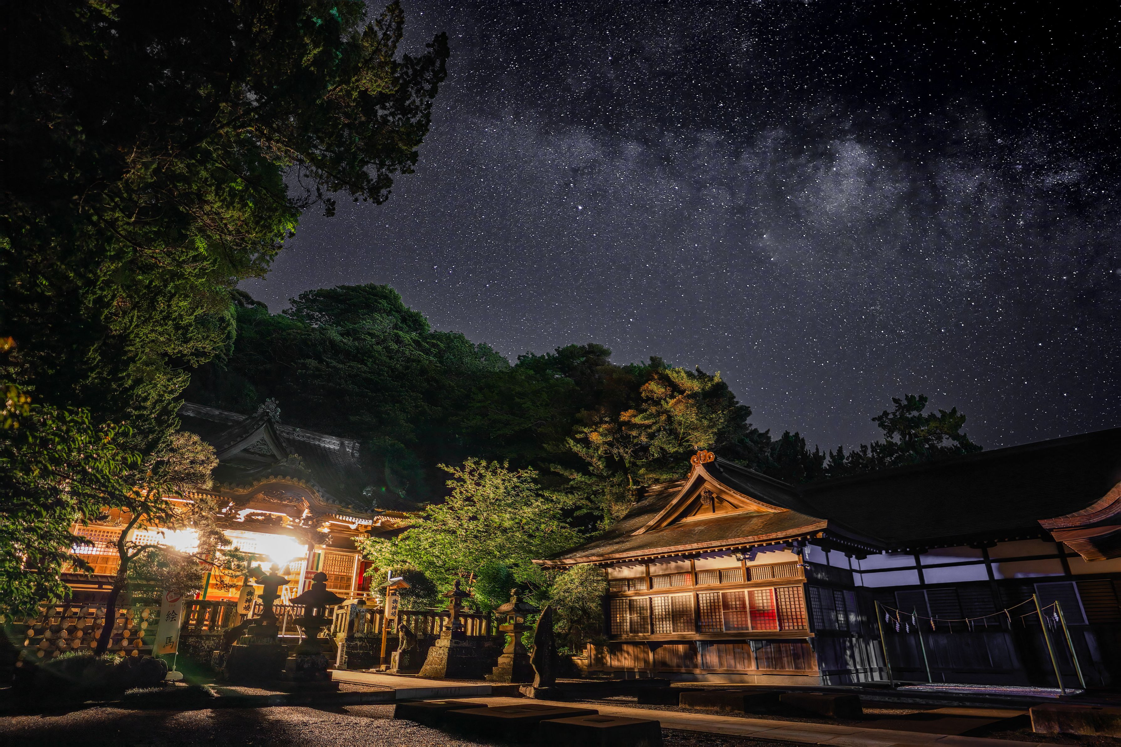 静岡県の白濱神社にて、星景撮影しました! 本殿が白飛びしてるのは、神が降臨したからです。(決してフィルターワークや合成をサボったわけ、、では、、) 反省点が多いですが、同時にとても好きなテーマの写真です。