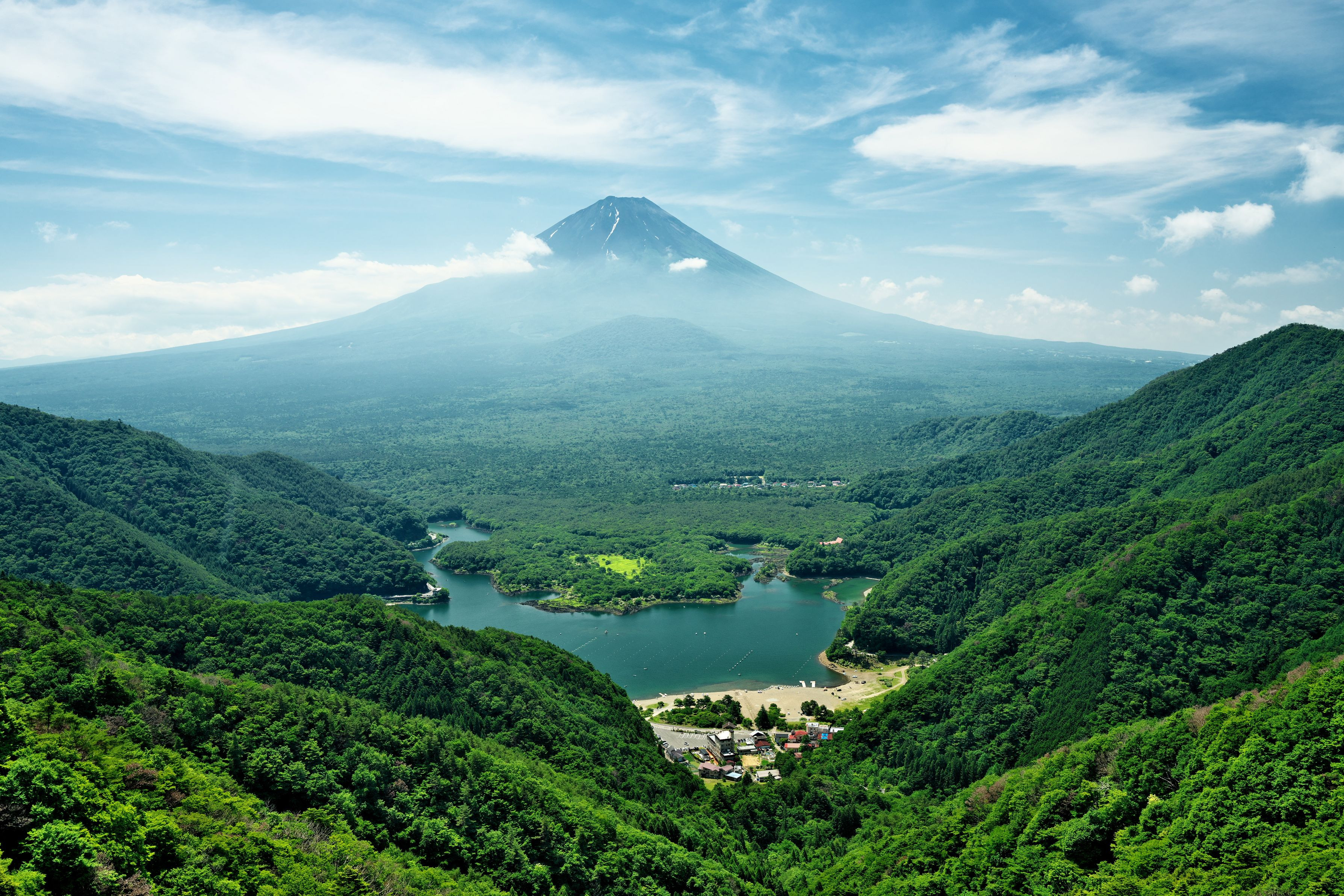 富士山に抱かれるように大室山がありますが見難いですね。手前に見える駐車場には自分の車が写っています(笑)