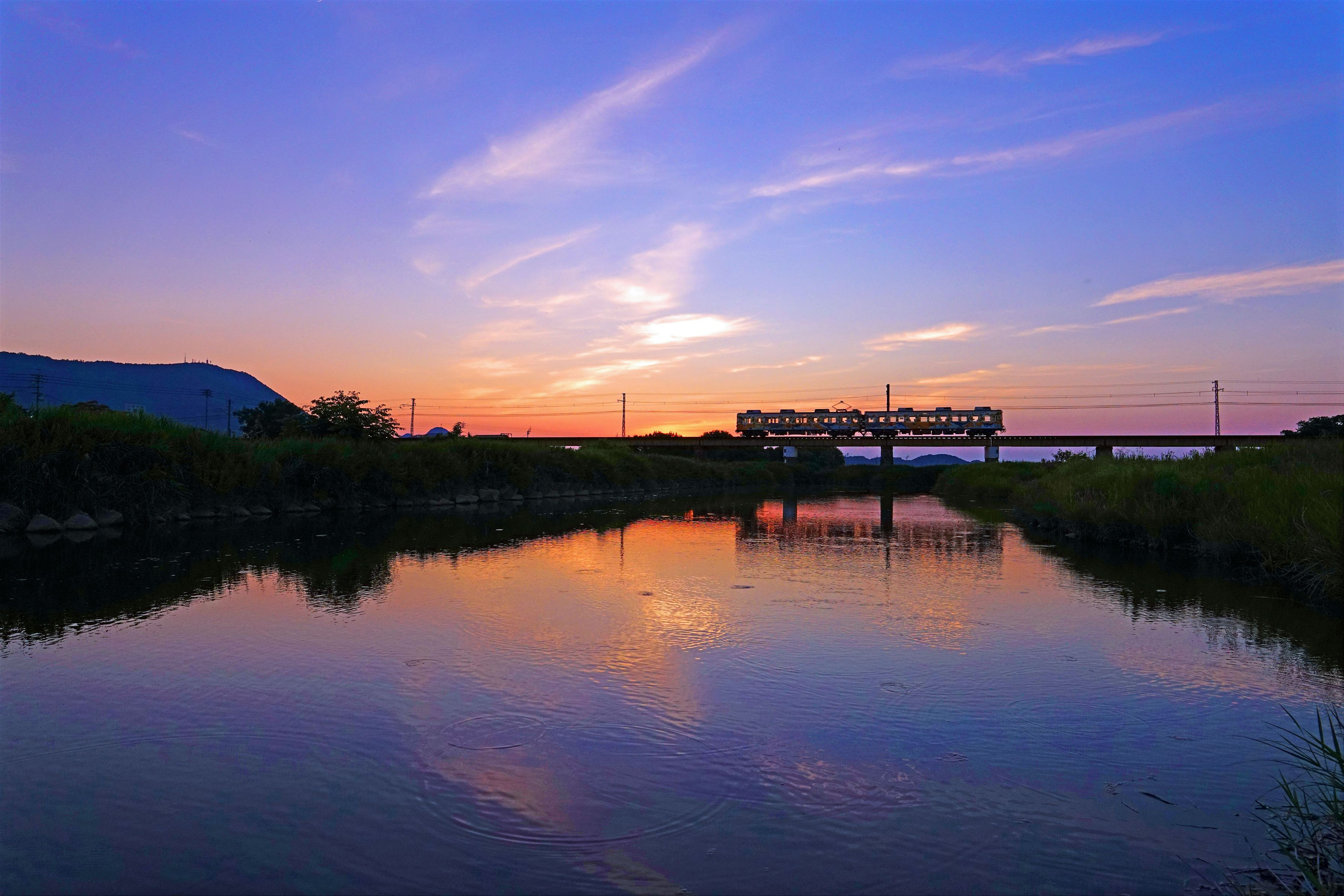 日没直後の祓川鉄橋