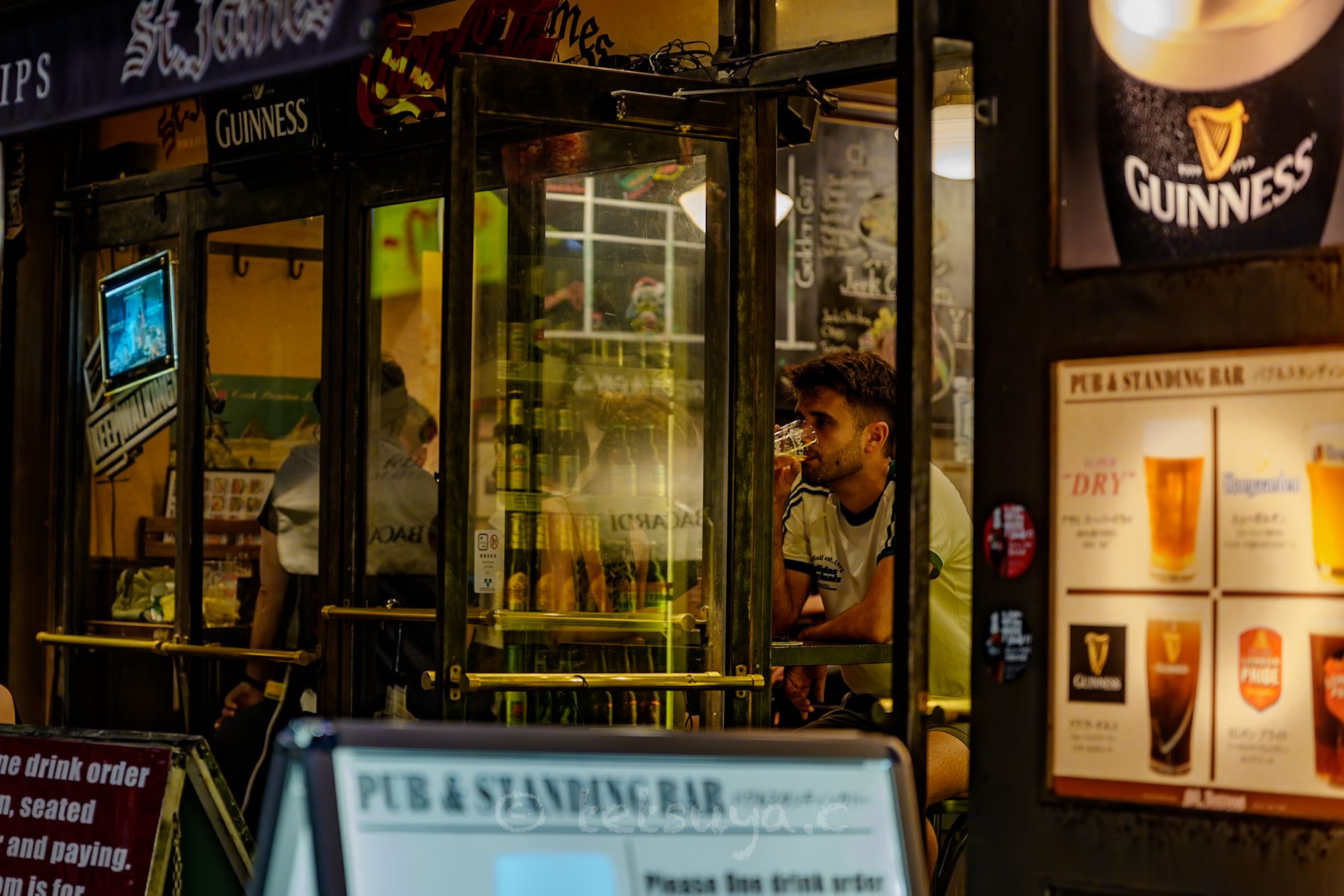 グラスを傾けるその横顔に、都会の夜が静かに溶けていく。 ほんの短い一瞬が、まるで映画のワンシーンのように感じられた。 灯りと人と酒の匂いが交わる、東京の片隅で。
