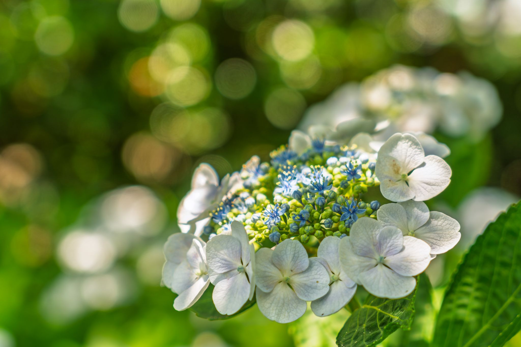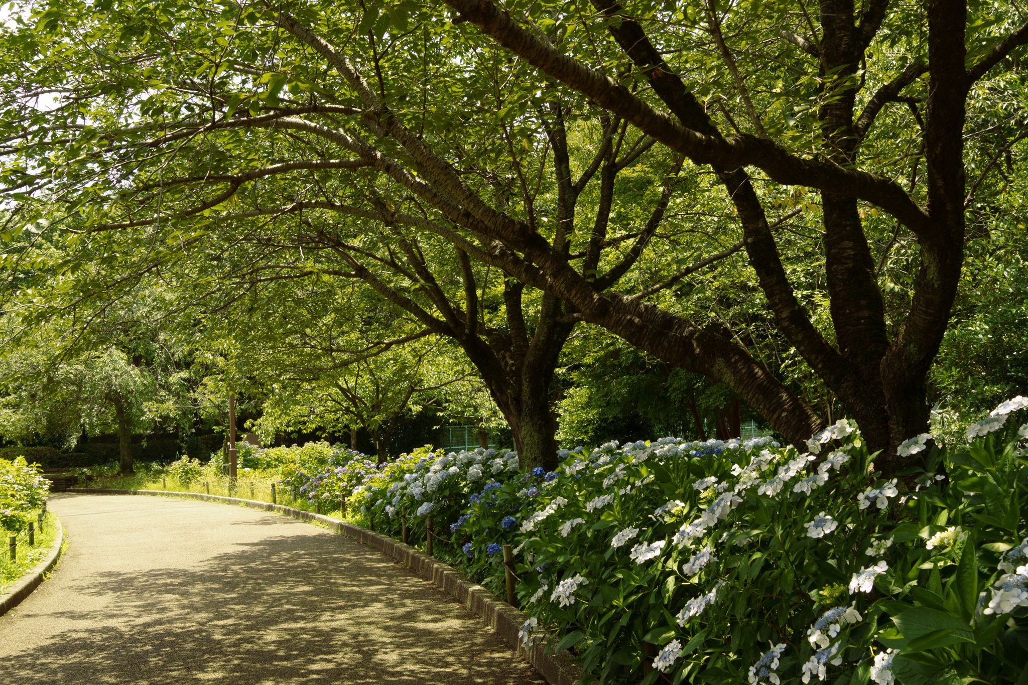 6月末に相模原北公園で撮影。 太陽が雲の隙間から顔を出したとき、木漏れ日に輝く紫陽花がとても印象的でした。