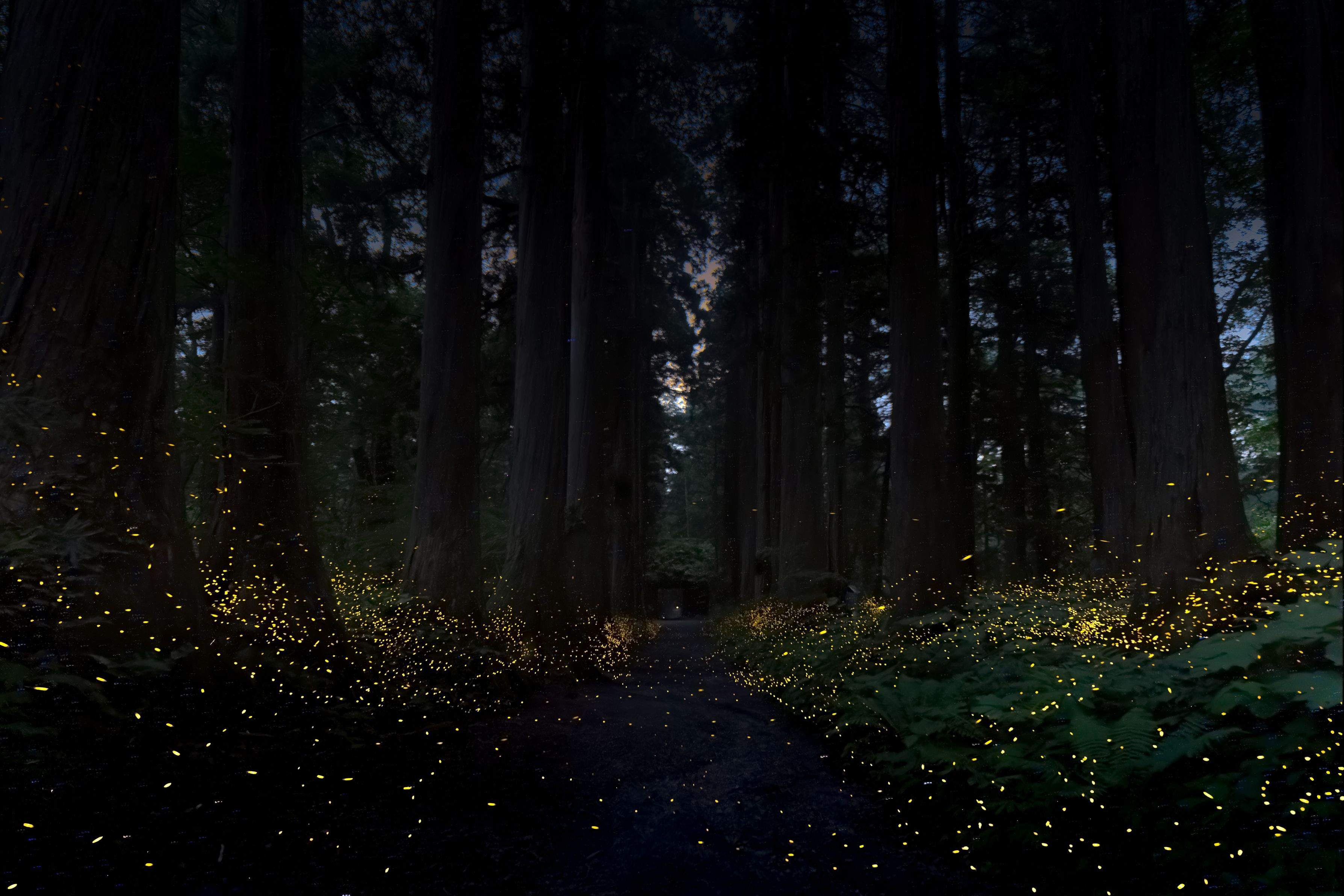 久しぶりの撮影行なのでヒメホタルの光を愛でて来ました。とある山奥にある神社の参道はヒメホタルの光で包まれており、気づけば自分自身も光に包囲されているような状況でした。偶然出会った同郷の方々とご一緒させて頂き、楽しい時間を過ごさせて頂きました。来年も見に来れたらいいな・・(笑)。同一カットを114枚比較明合成した作品です。