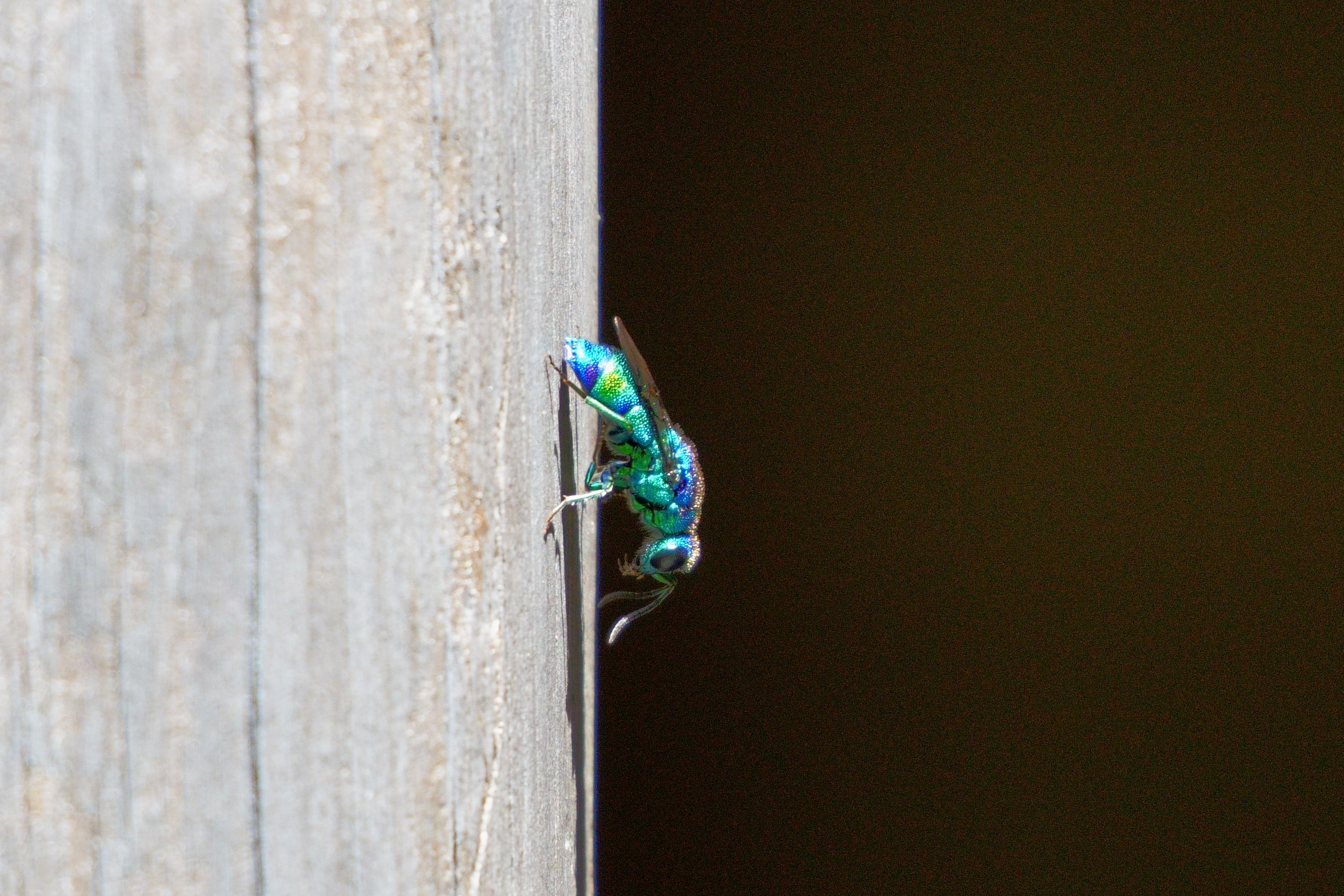 針は無く、構造色で綺麗に輝く蜂! 教えてもらわないと気づきませんでした(^_-)