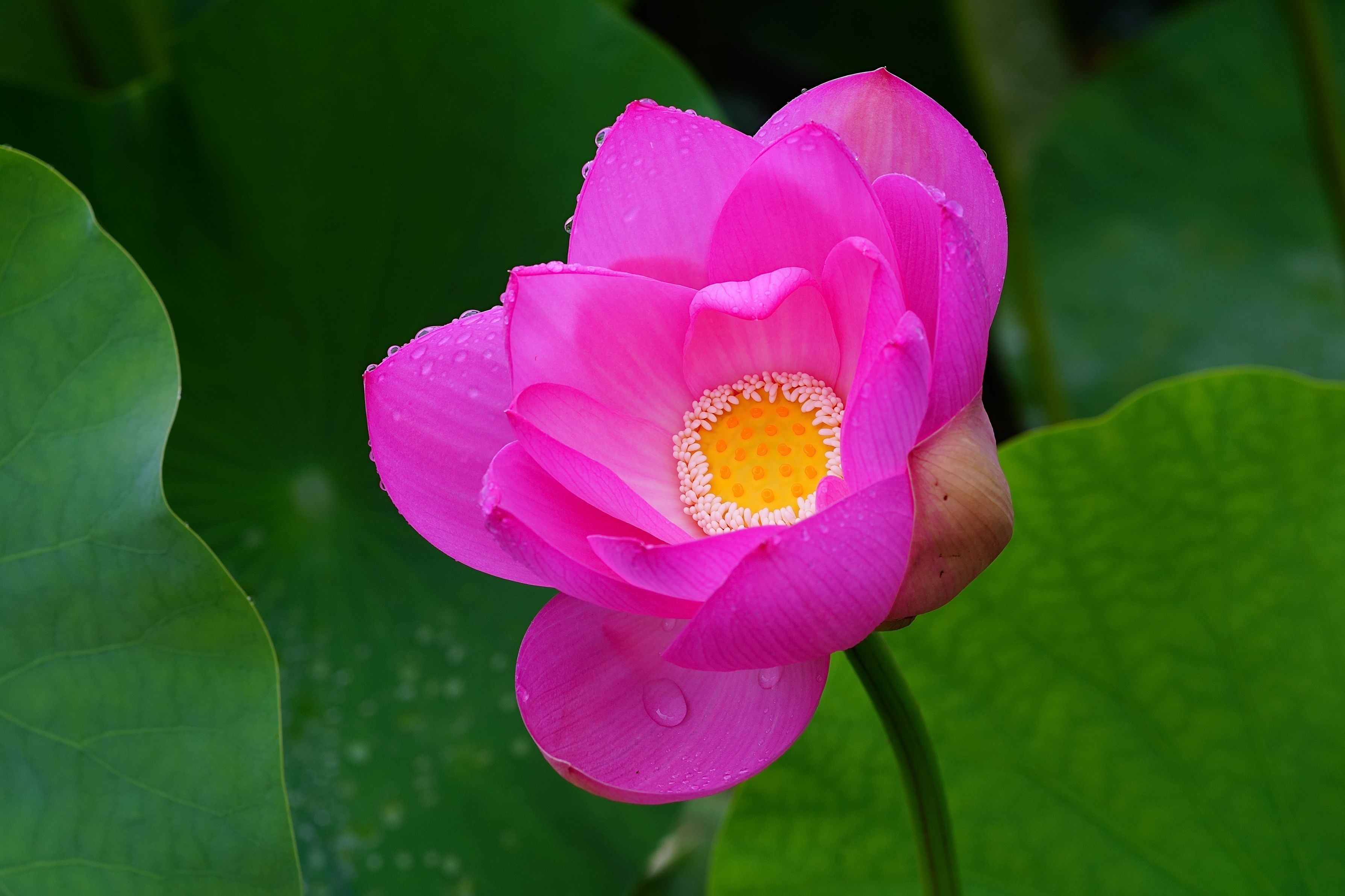 石川県津幡町舟橋の古代ハス畑を訪ねてみました。撮影時の7月15日(火)は台風5号の影響を受けて深夜に雨が降りました。雨上がりの朝、気持ち良さそうな花ハスが美しい姿を魅せてくれました。