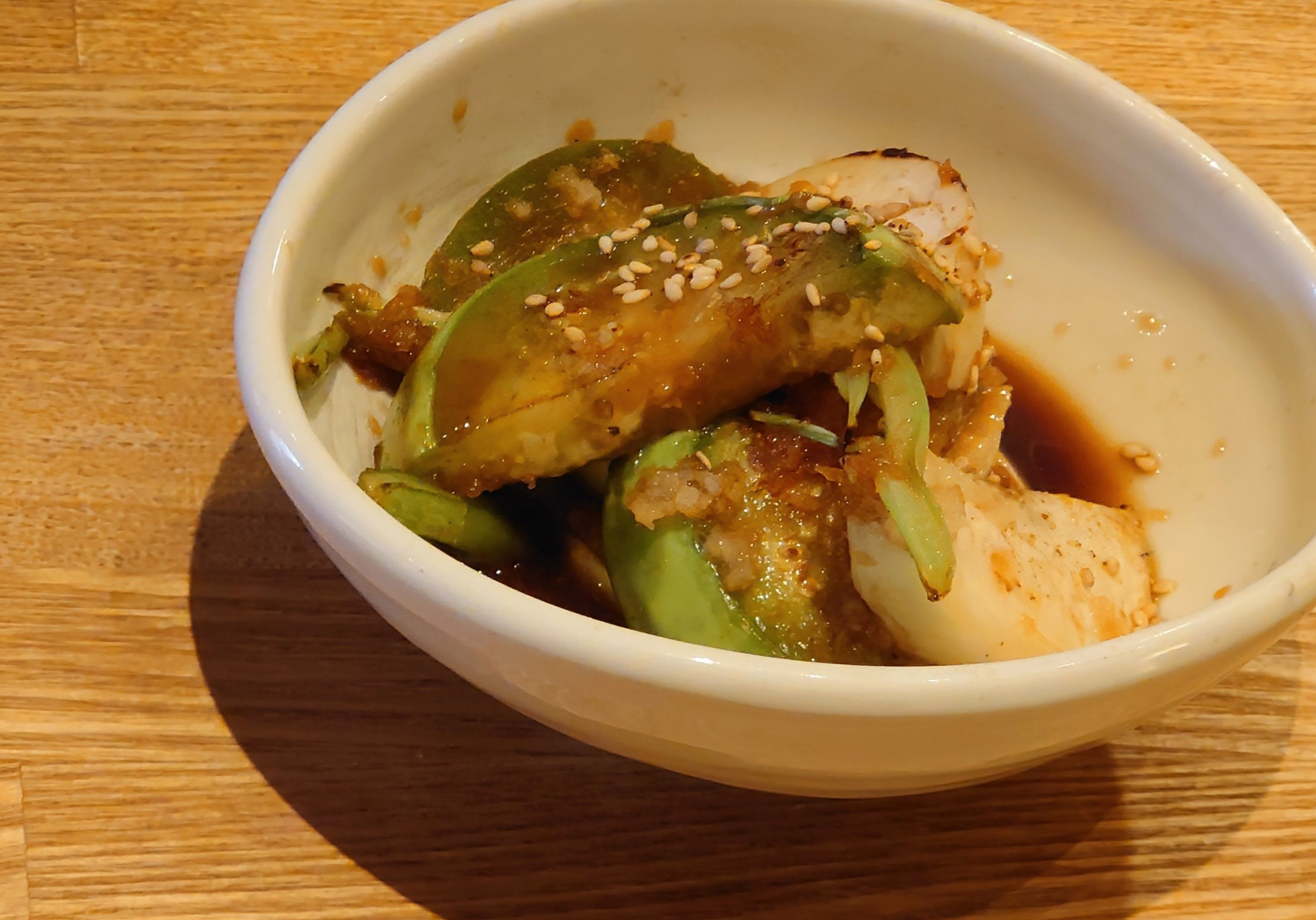 白ナスが安いです🙂 トロッとした白ナスとカブのしっかりした食感のコンビネーション🍀 すりおろした生姜や白ゴマと共に、甘辛じょうゆの味付けで…。