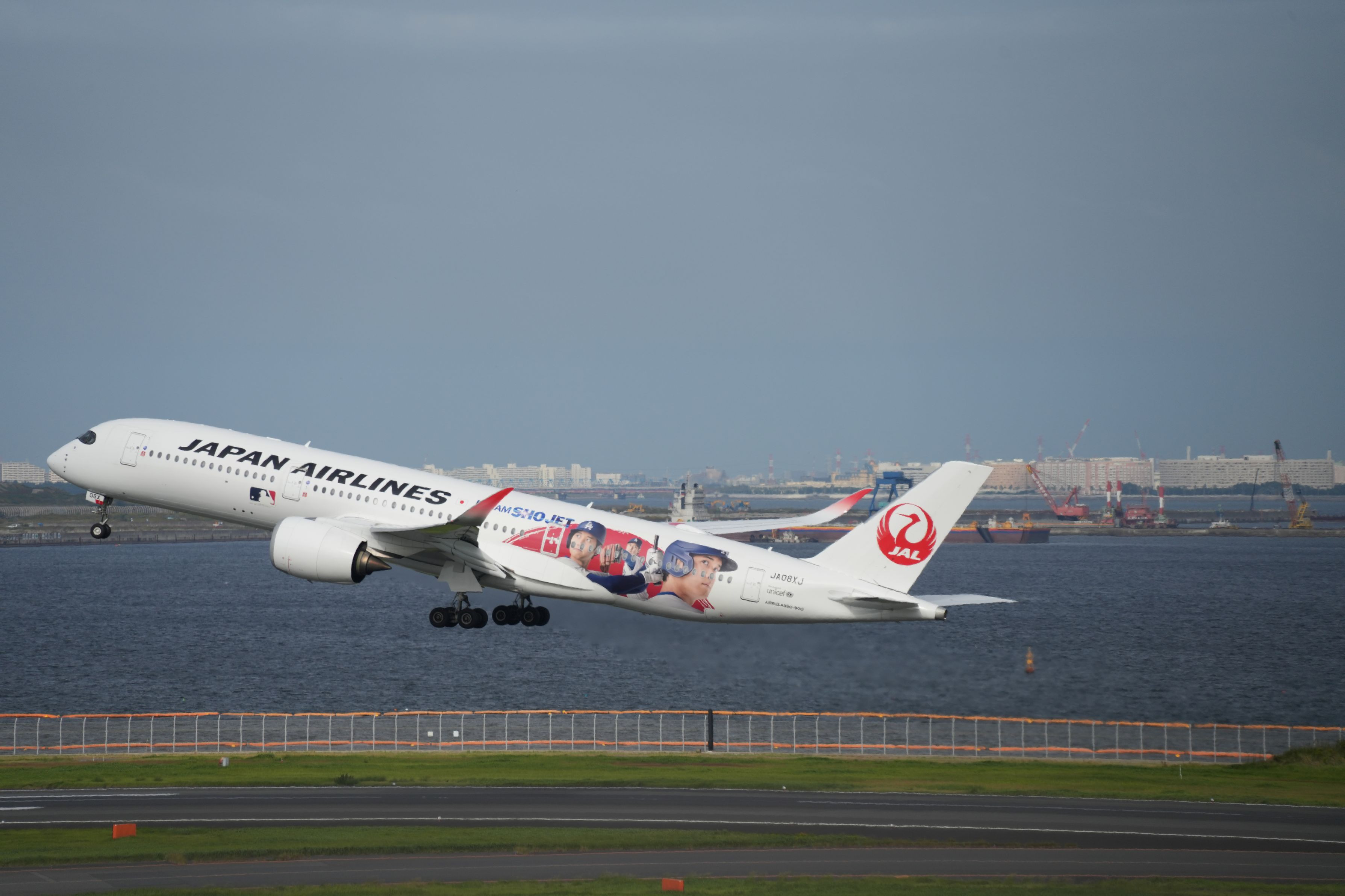 大谷選手を描いた特別塗装機「DREAM SHO JET」を撮りました。(羽田空港第1ターミナル) (エアバスA350-900型機)