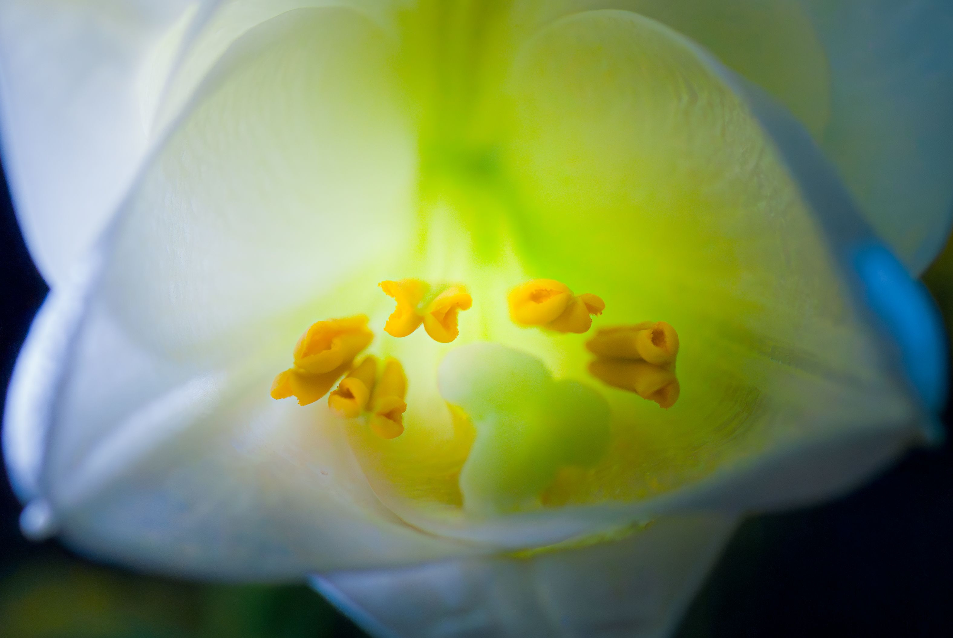 完全開花前の白百合の花・・・奥の緑が初々しい!