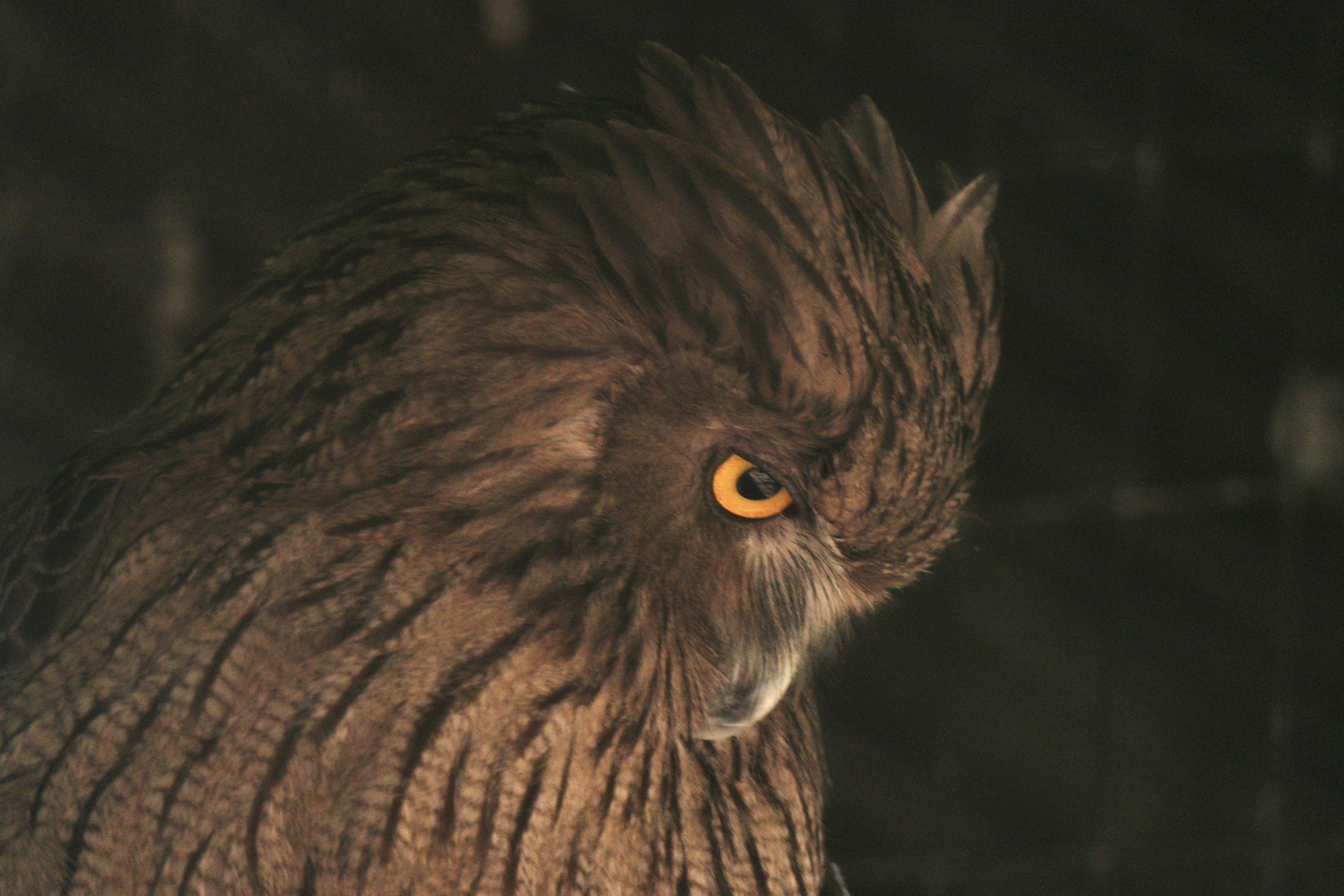 シマフクロウのひと睨み、目力半端ないですね