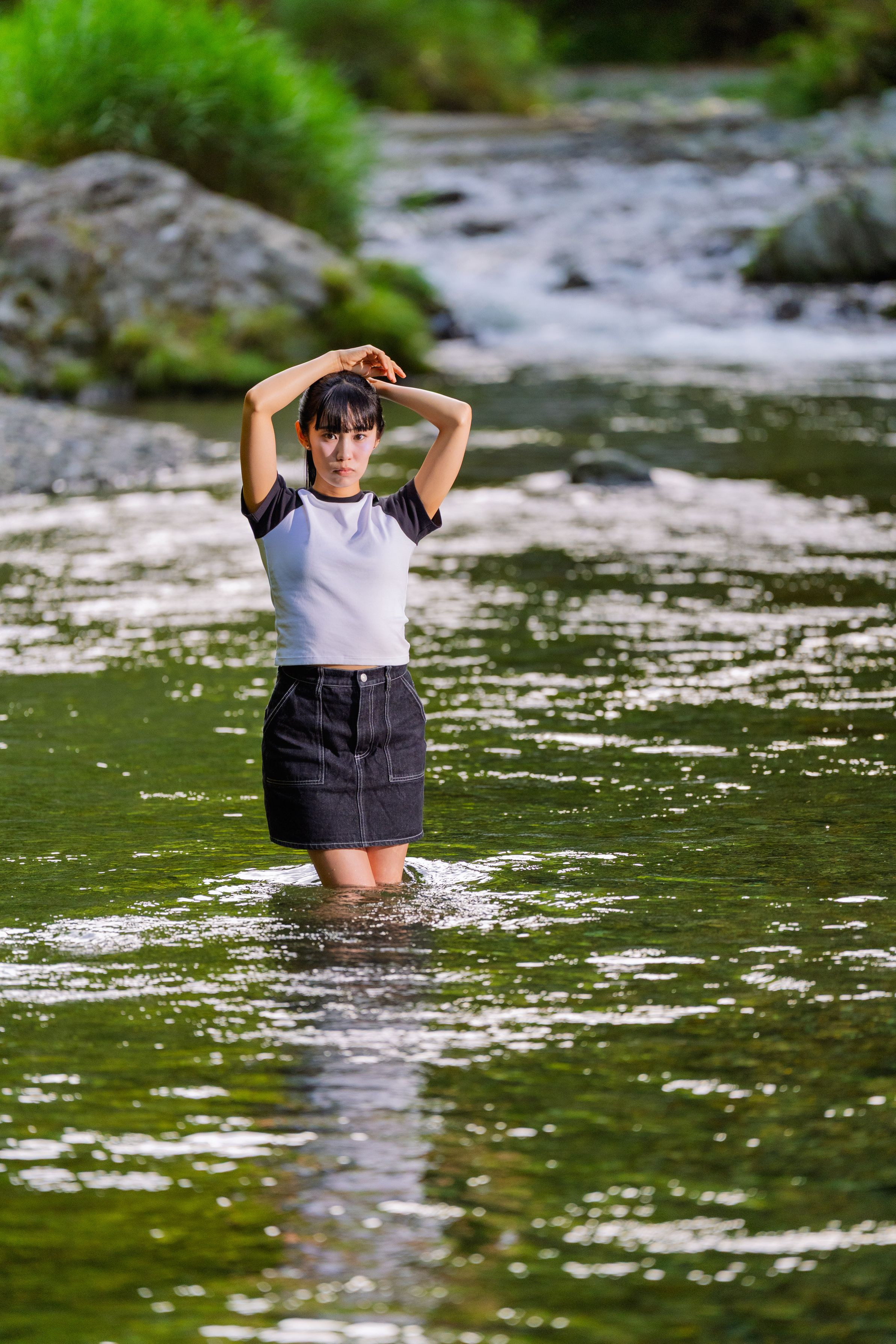 清流の中での撮影。