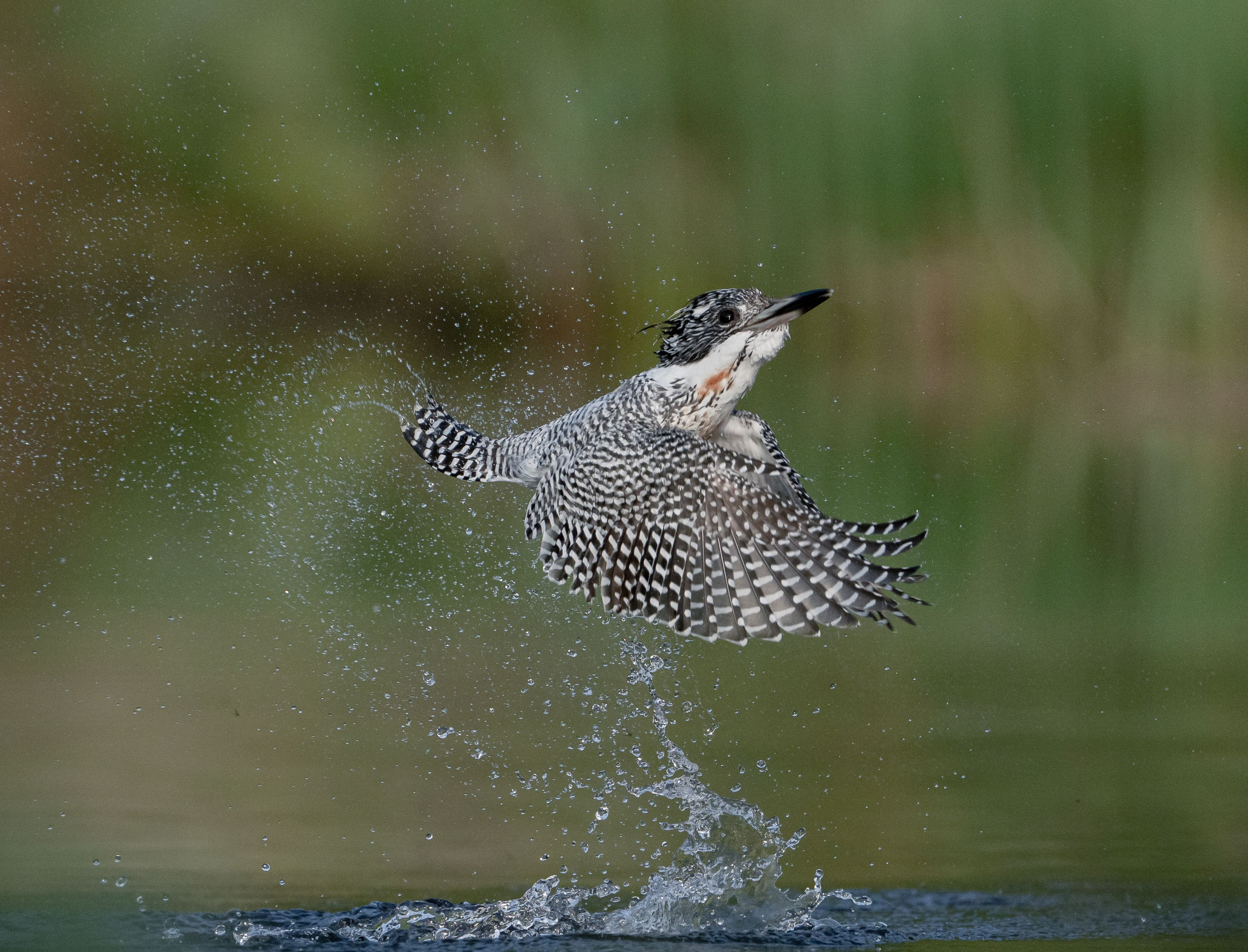 朝一でヤマセミの水浴びが始まった!!目覚めの水浴びのようだ!