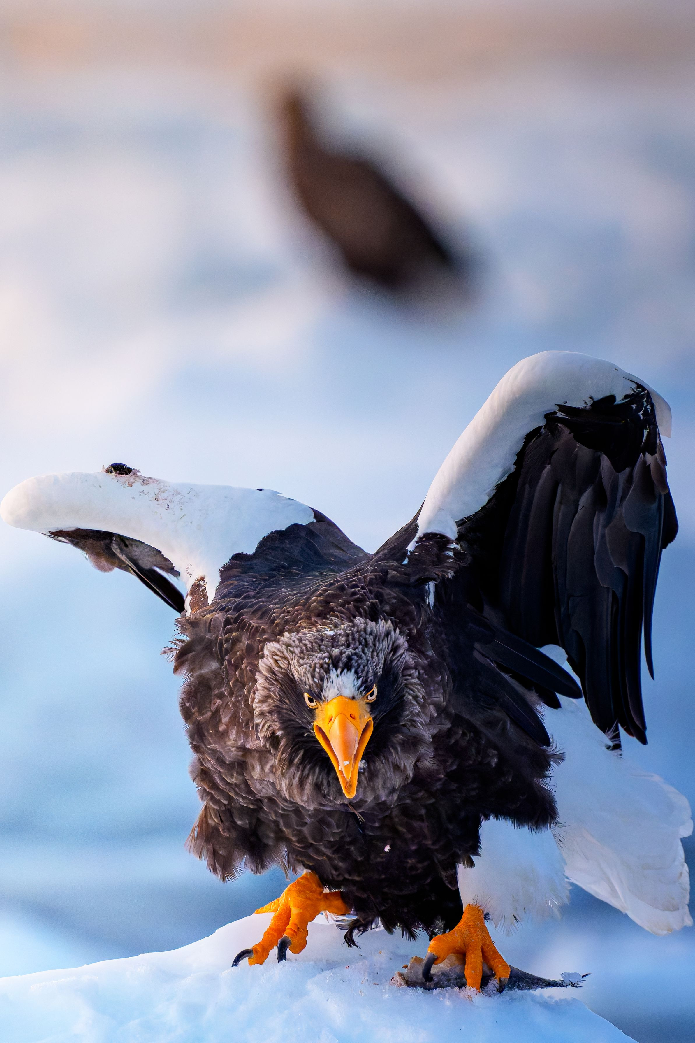 北海道の流氷はオオワシの楽園でした 人間は侵入者 威嚇というより余裕を感じますね #オオワシ#