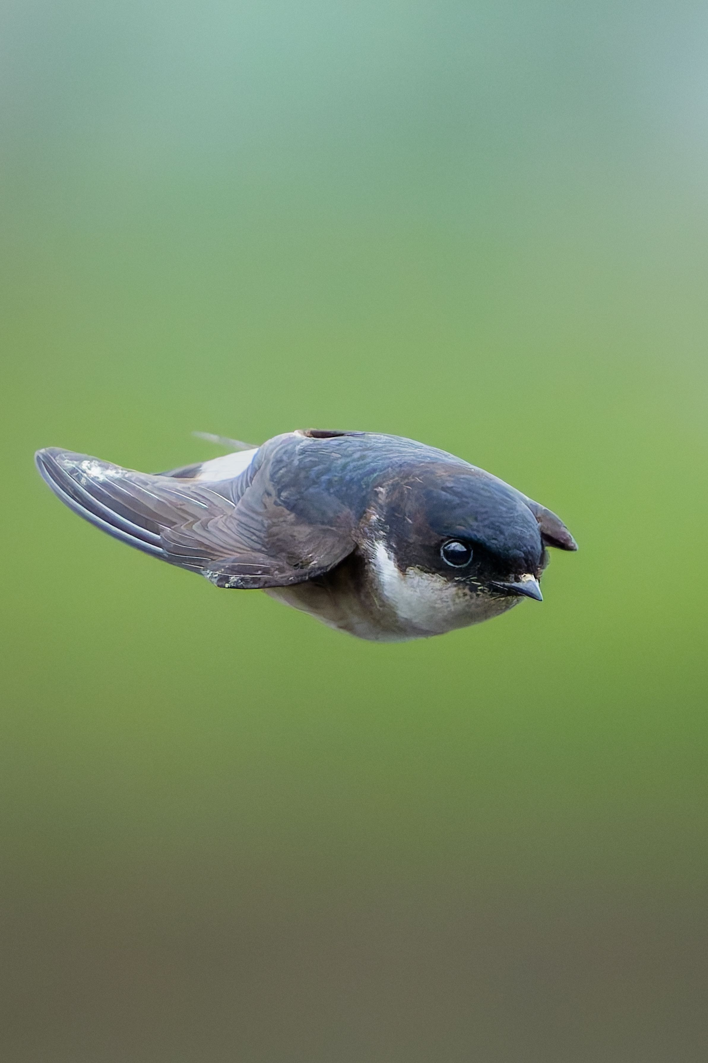 河原の草地を高速で飛び回るイワツバメ 緑の背景で狙って正面を捉えたら地面・草地・空で面白いグラデーションの背景となりました #イワツバメ#