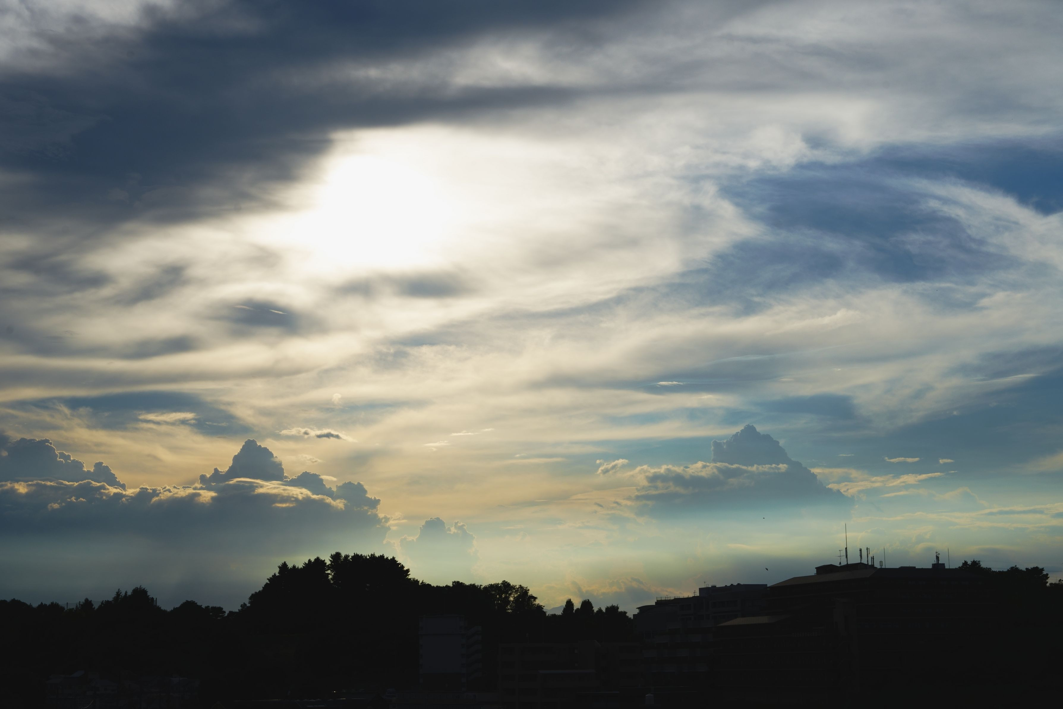 夕暮れ前にいろんな種類の雲が重なって水墨画のような風景が生まれていました。タイトルはchatGPTにつけてもらいましたw