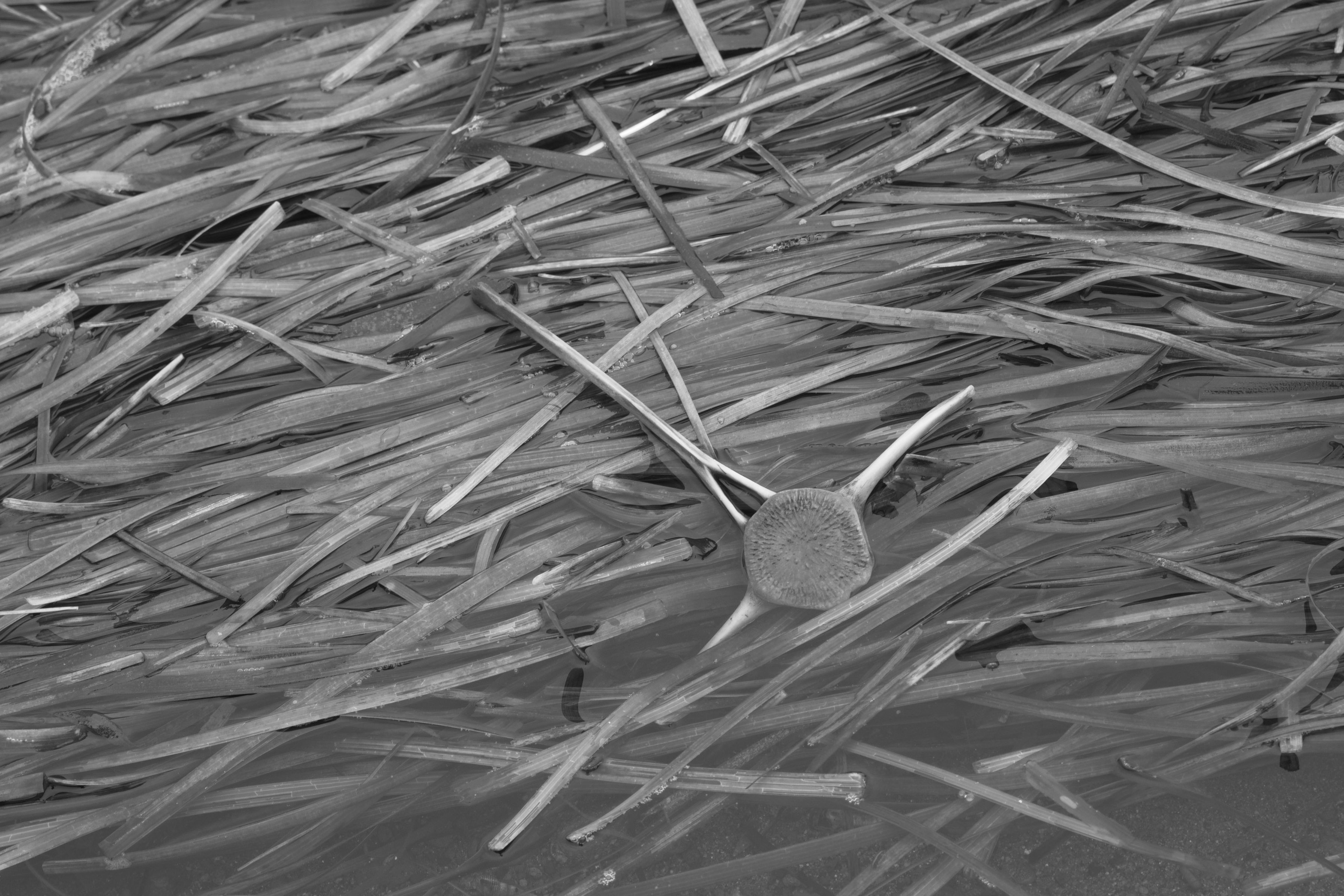 ネズミイルカの頸椎がアマモの上に流れ着いた