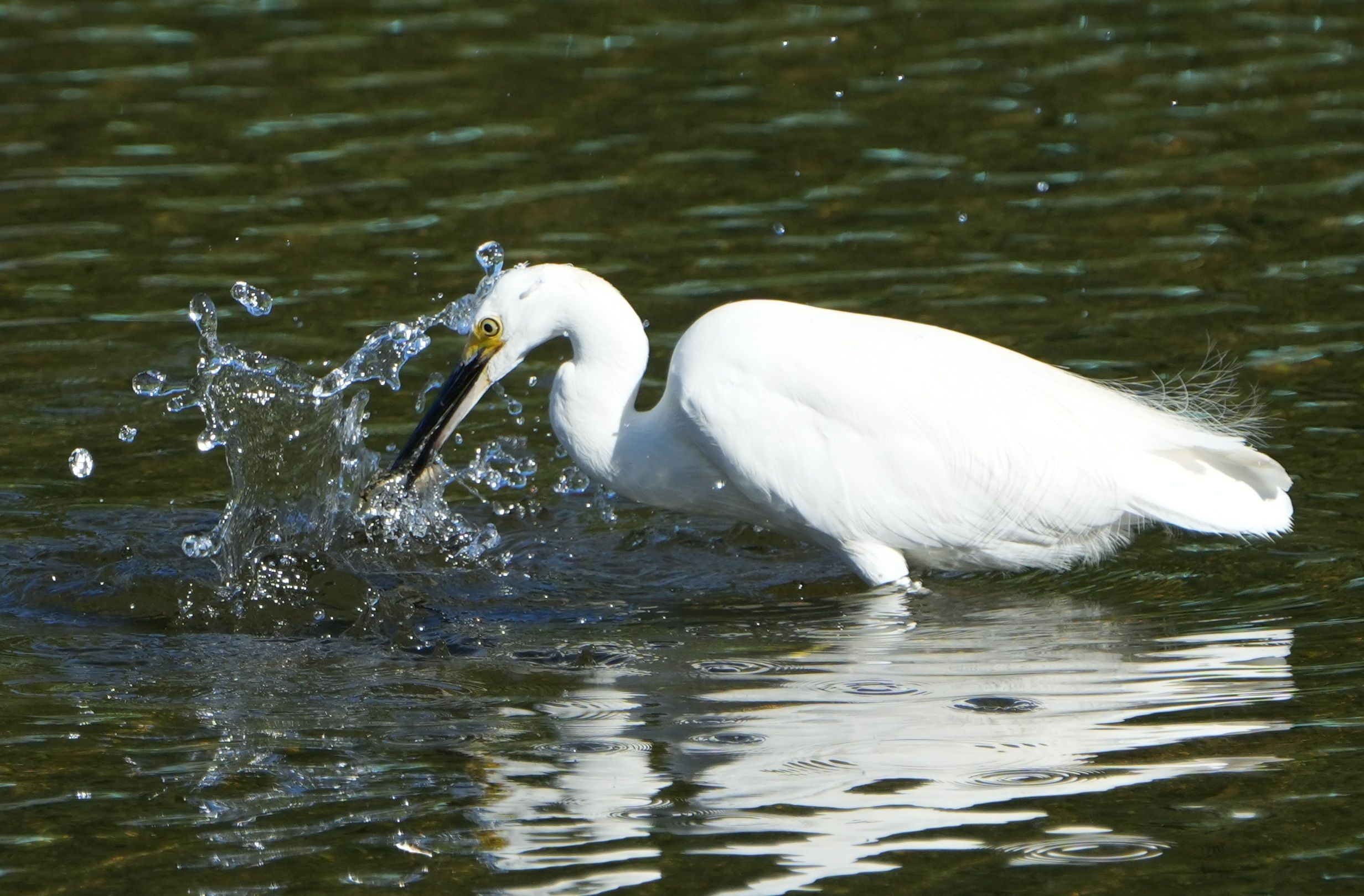 いつものウォーキング、リバーコースにて いつものコサギ、朝食です