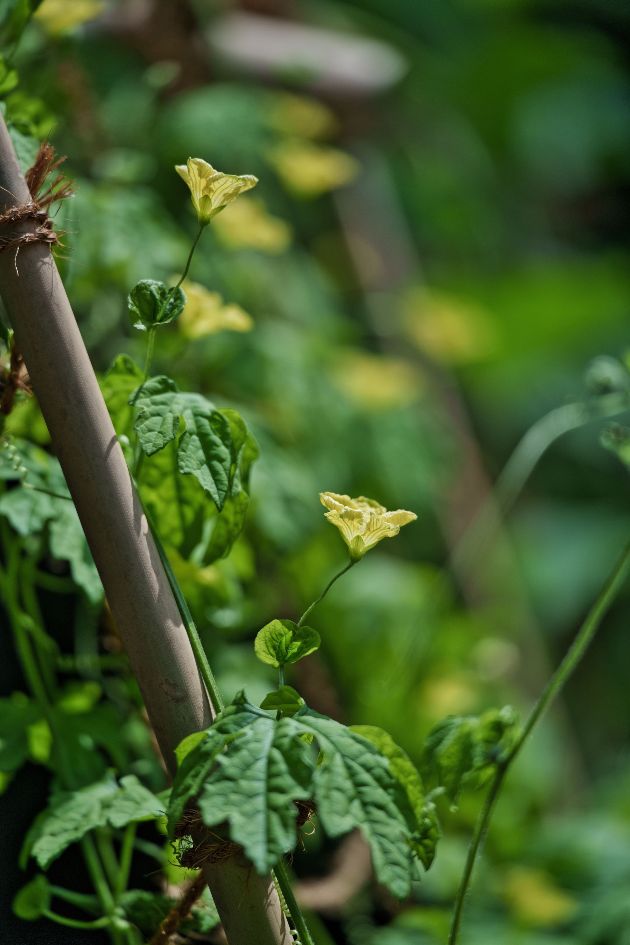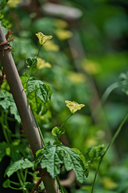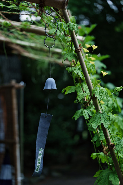 暑い正午過ぎに訪問した殿ヶ谷戸庭園の受付に日除で植えられたゴーヤの黄色い花と吊るされた鉄製の風鈴の澄んだ音が涼を届けてくれました。