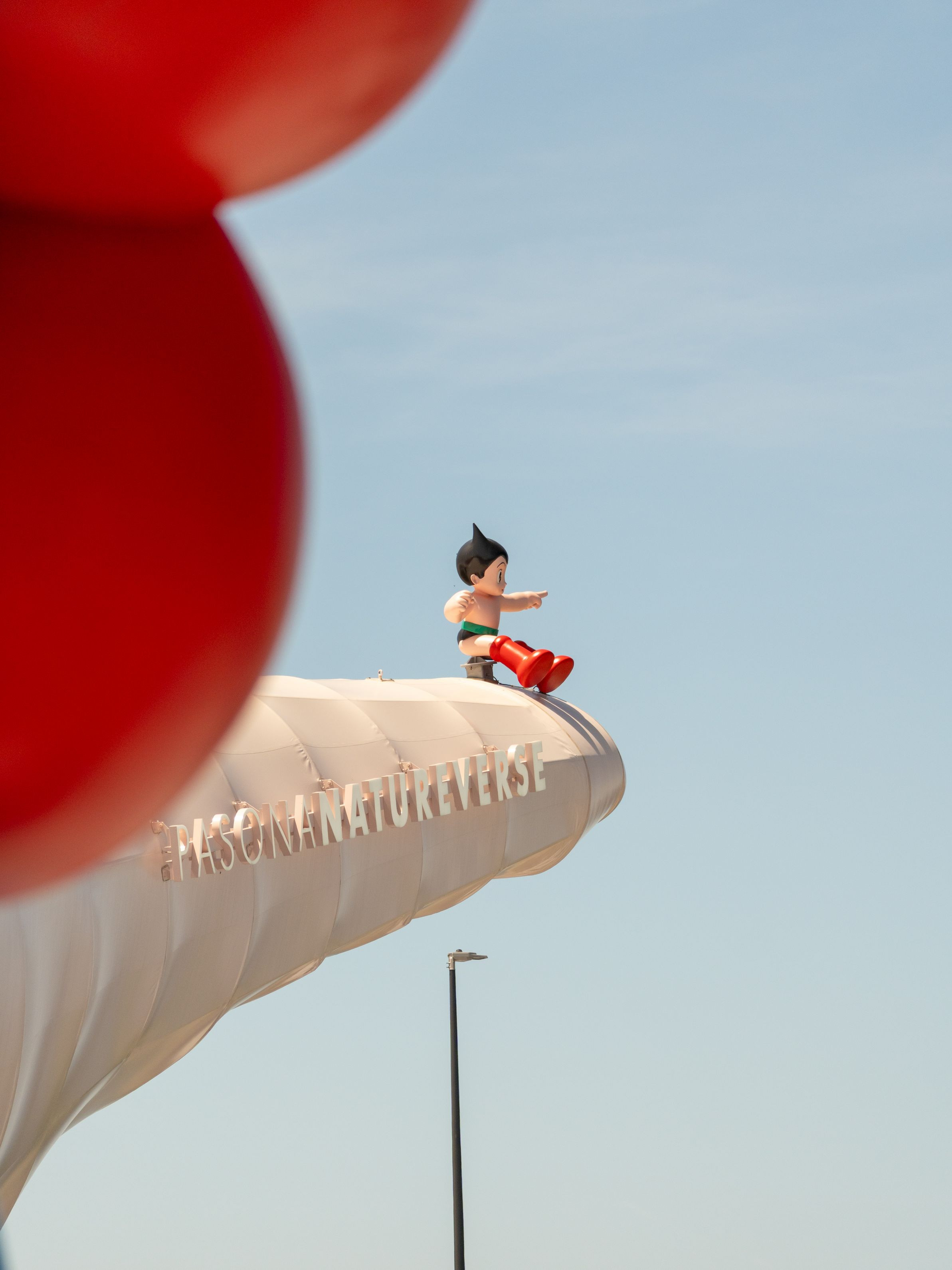 ミャクミャクの背中越しから見たアトムです