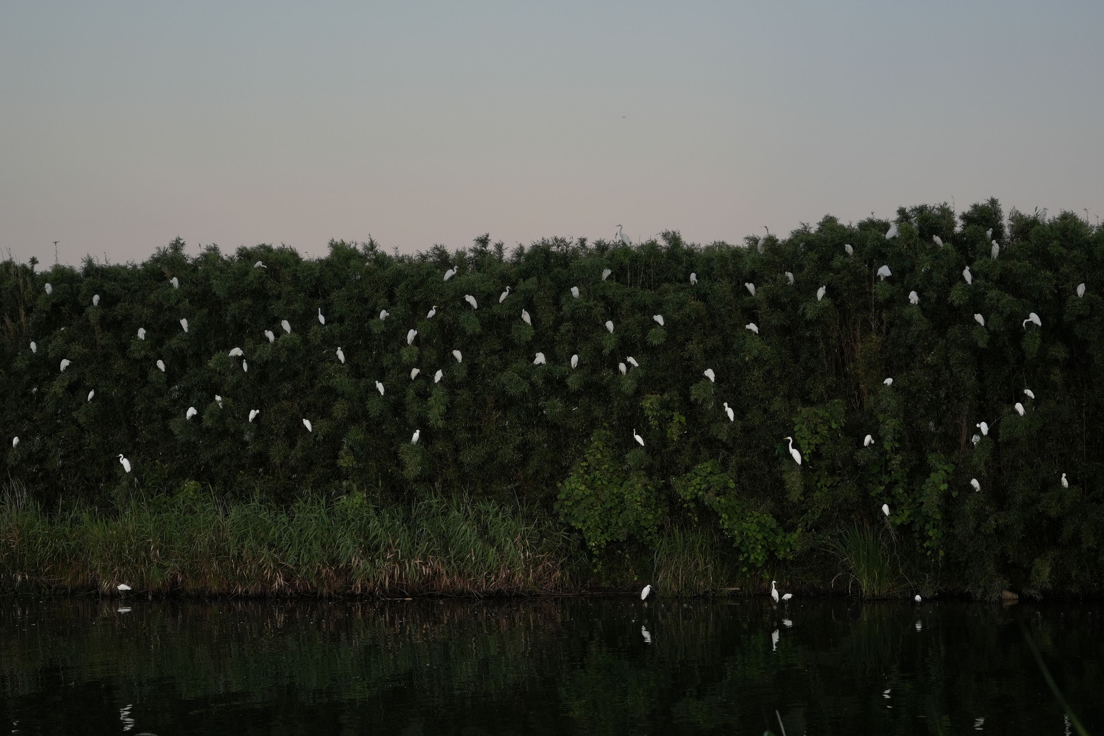 今年もサギの集団営巣が始まった。
