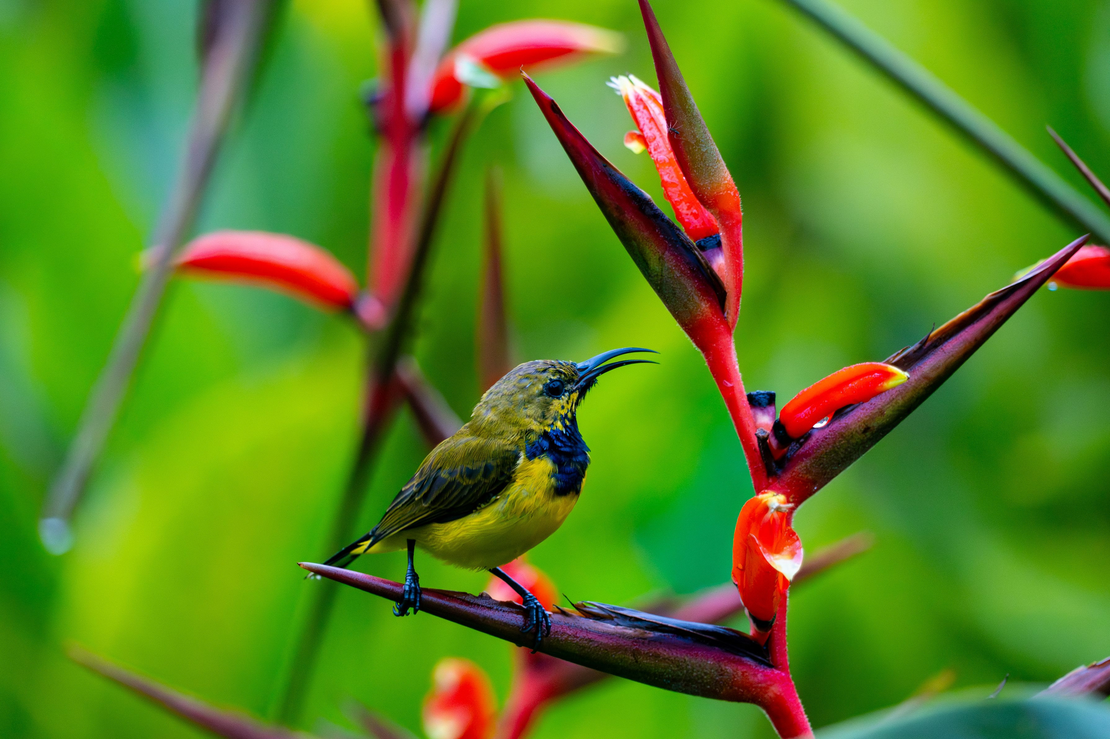 前に投稿したキバラタイヨウチョウの違うバージョン。こちらの方が動きはあるが、前に投稿した写真の方が、鳥がきれい。