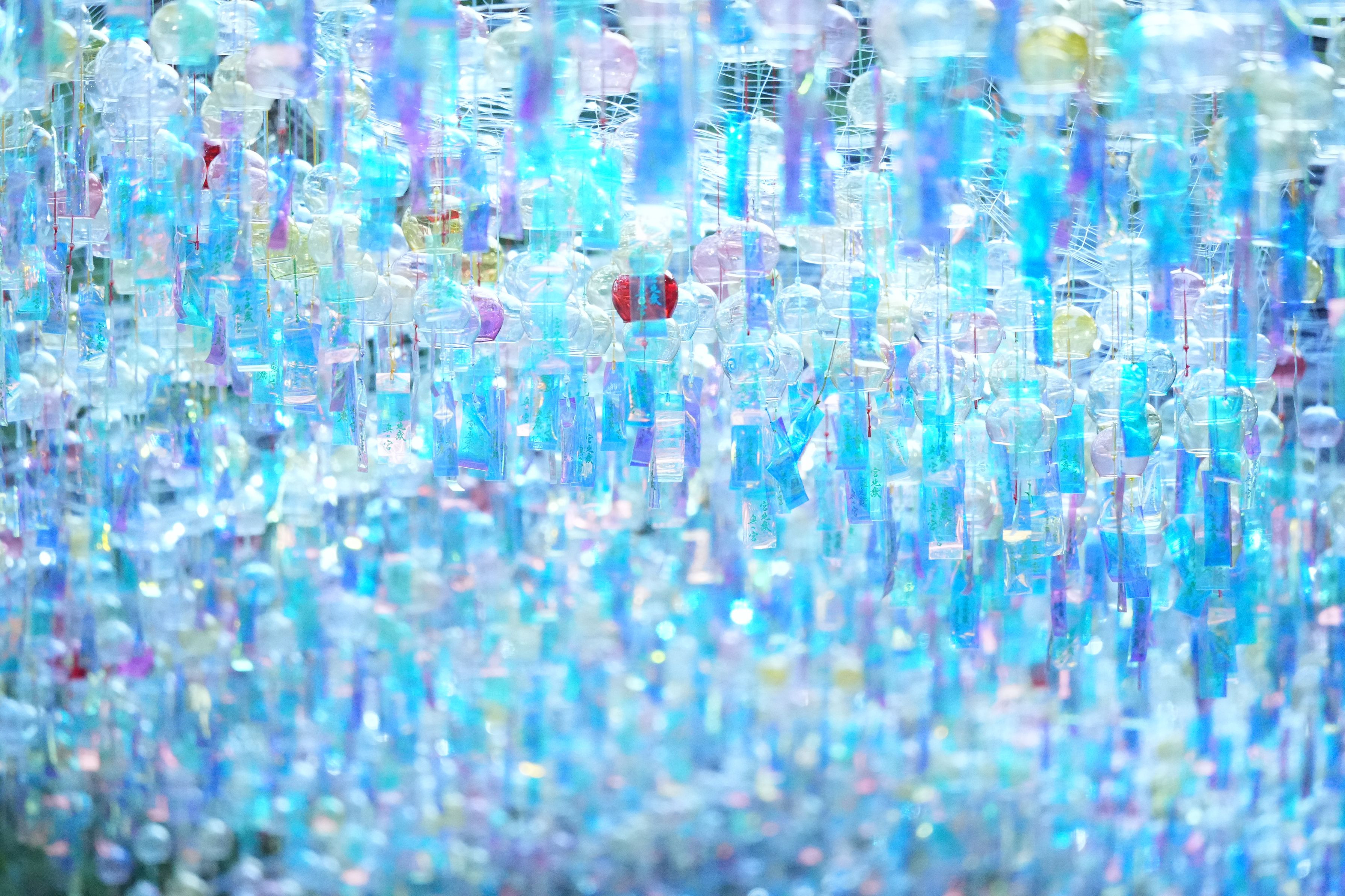 20250730。宮地嶽神社の風凛祭に今年も来ました。前年より早い時刻に訪れることができたので、夜にライトアップされる風景とは異なる雰囲気の風鈴を写せた。(実生活が多忙を極め、カメラを持つことすら久々だったので、リハビリがてらのカメラ活動でした)