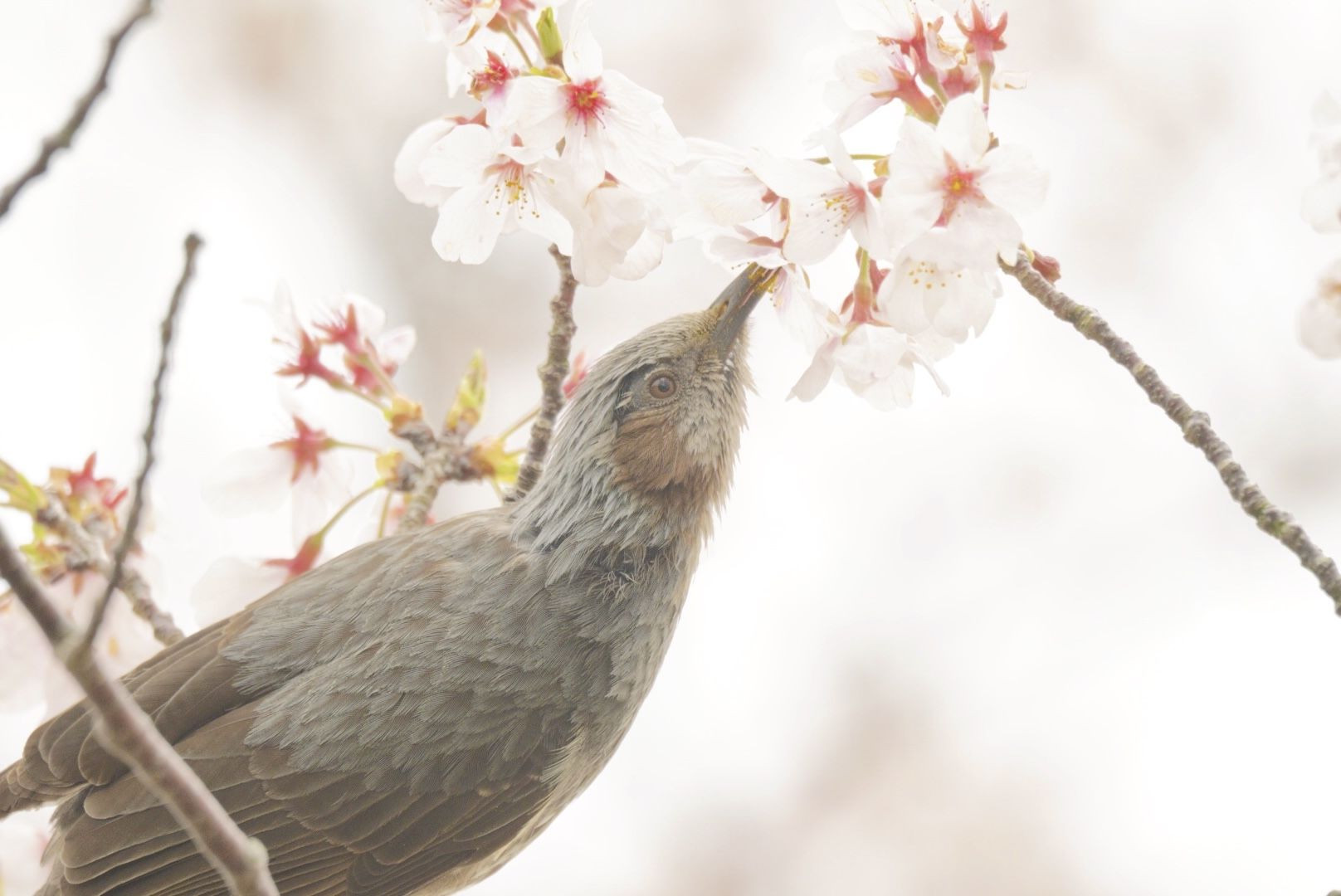 春を待っていたと言わんばかりに桜の蜜を啄んでいました。よっぽど美味しかったのでしょうか、くちばし中についた花粉がまた可愛らしいです。 #ヒヨドリ#