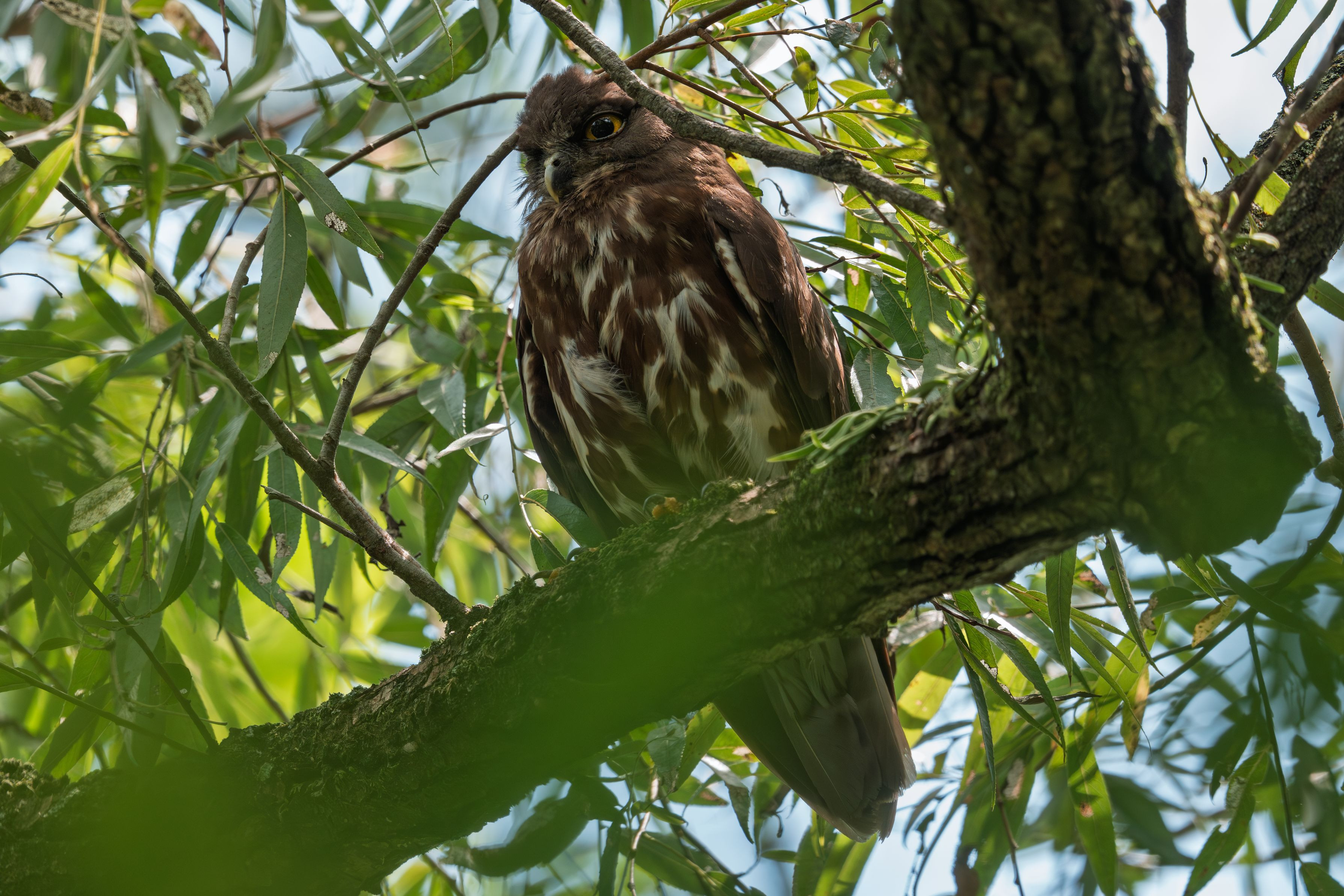 時々、アオバズクさんの様子を見に行っていました。 この日は番で枝にとまっていました。 先日、絡まっていた紐のようなものは外れていました。 この一週間後に見に行ったら既に巣立ったようで見つけられませんでした。