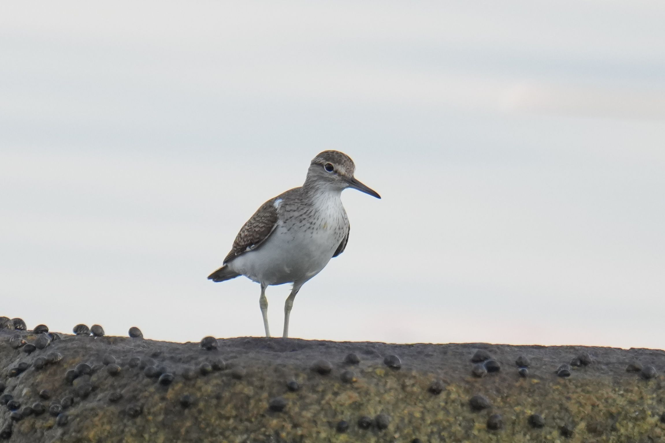 キアシシギに半月遅れで磯で一番のおなじみがやってきました。他の鳥がいなくなっても最後に残るのがおそらくこの子達です。 #イソシギ#