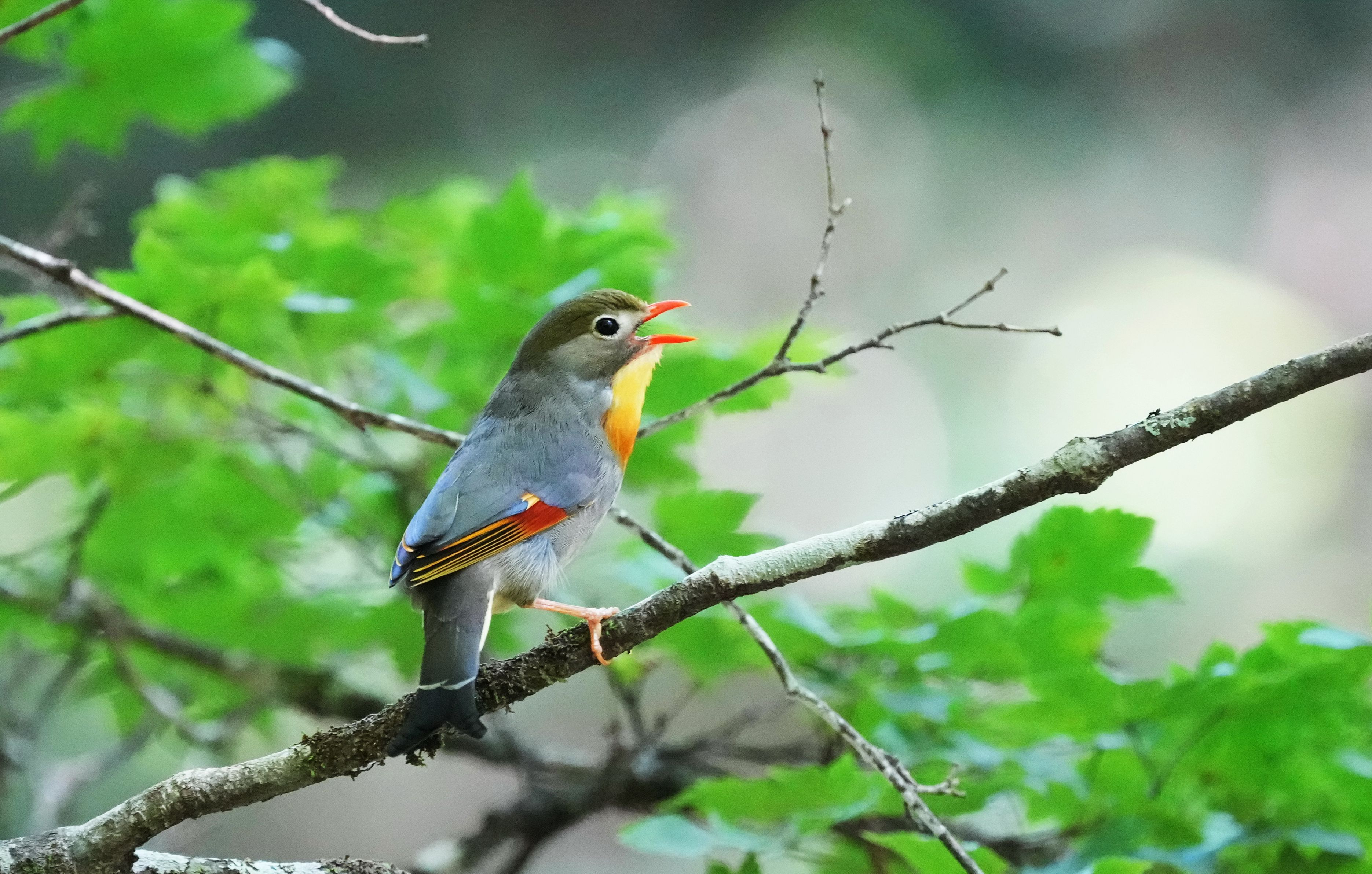 枝で盛んに囀ってました。可愛い声が大きく響き渡ってます。涼しい木陰で聞いてると来て良かったと思います。