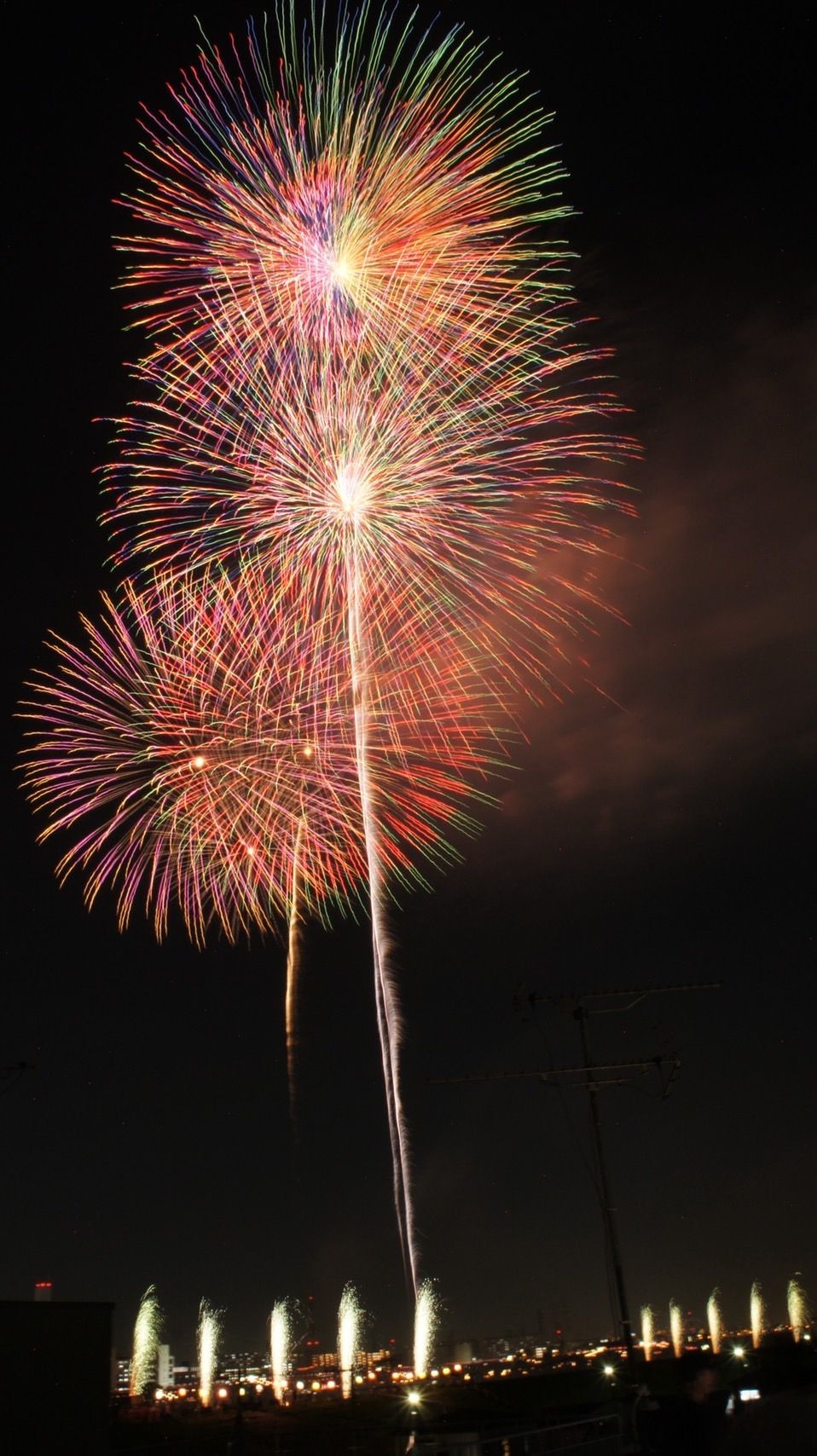 戸田橋花火大会で撮った1枚。三脚で固定しバルブをすることで花火が線になって現れました。古い機種の良さを再確認できたようで嬉しかったです。