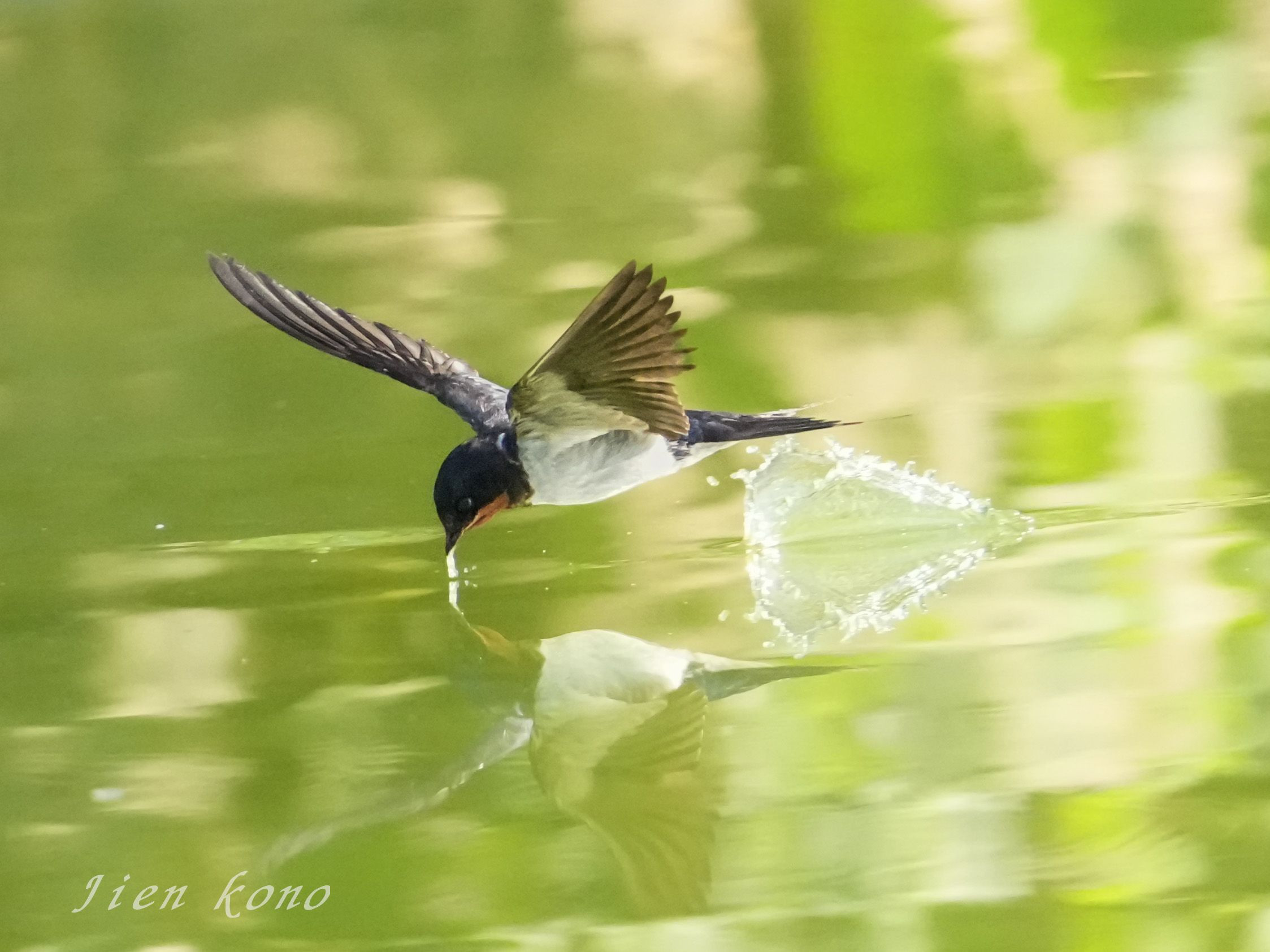 向かいの公園の池のツバメですが、水面で餌を食べるのは珍しいです。